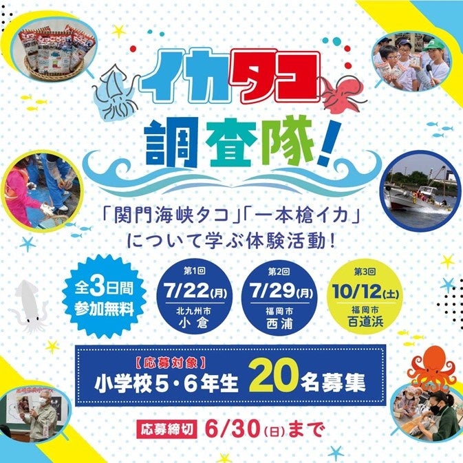 「関門海峡タコ」と「一本槍イカ」についてプロフェッショナルな講師陣による体験学習プログラムを企画し、福岡県内の小学5・6年生を対象に20名の参加者を募集中です。