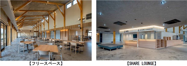 大和ハウス工業は2050年のカーボンニュートラル実現に向けて「木造・木質建築事業」を掲げ、非住宅の木造・木質化を推進するプロジェクト「Future with Wood」を加速させています。その中で、本施設もCO2の固定化や森林資源循環などに貢献するため、木造建築とすることで木材利用の推進にも寄与しました。また、木材には落ち着きを与える効果が期待できるため、利用者に心地よい場となるよう、フリースペースや、CCCが運営する「SHARE LOUNGE」にも木材を採用しています。