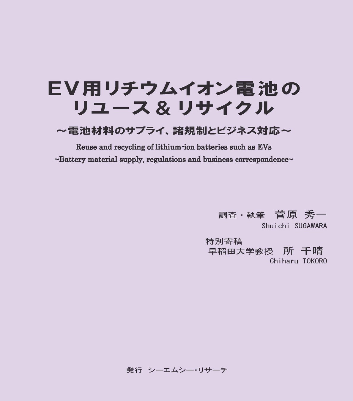 【新刊案内】EV用リチウムイオン電池のリユース&リサイクル ~ 電池材料のサプライ、諸規制とビジネス対応 ~ 調査・執筆:菅原 秀一 発行:(株)シーエムシー・リサーチ