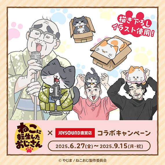 株式会社エクシングの子会社で、全国にカラオケ店舗・ネットカフェ店舗を展開する株式会社スタンダード(本社:東京都港区、代表取締役社長:小林克章)は、2025年6月27日(金)から2025年9月15日(月)までの期間中、「ねこに転生したおじさん×JOYSOUND直営店コラボキャンペーン」と題し、JOYSOUND池袋西口公園前店(東京)・JOYSOUNDなんば戎橋店(大阪)にカラオケコラボルームをオープン!また、JOYSOUND直営店30店舗にて、オリジナルノベルティ付きコラボドリンクを展開します。当コラボでは、プンちゃん(おじさん)がカラオケを楽しむ姿を含む、オリジナルの描き下ろしイラストを使用いたします!