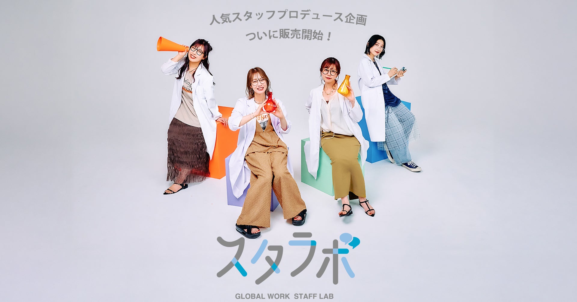 GLOBAL WORKは、スタッフプロデュース企画「STAFF LAB(スタッフラボ)」略して“スタラボ”企画を始動いたします。“LAB”=研究所という意味の通り、お客さまが本当に欲しいと思うアイテムをスタッフが研究し、プロデュースする企画です。記念すべき初年度は、ファッションのテイストや年齢、特徴も違う 4 名のスタッフ「せこ子(イオ ンモール長久手店)」、「しゅり(イオンモール成田店)」「airi(イオンモール羽生店)」、「遥(くずはモール 店)」が今年 1 年を通してプロデュースを担当します。