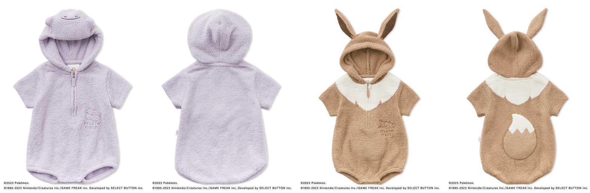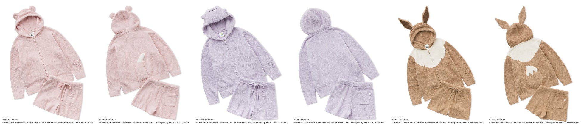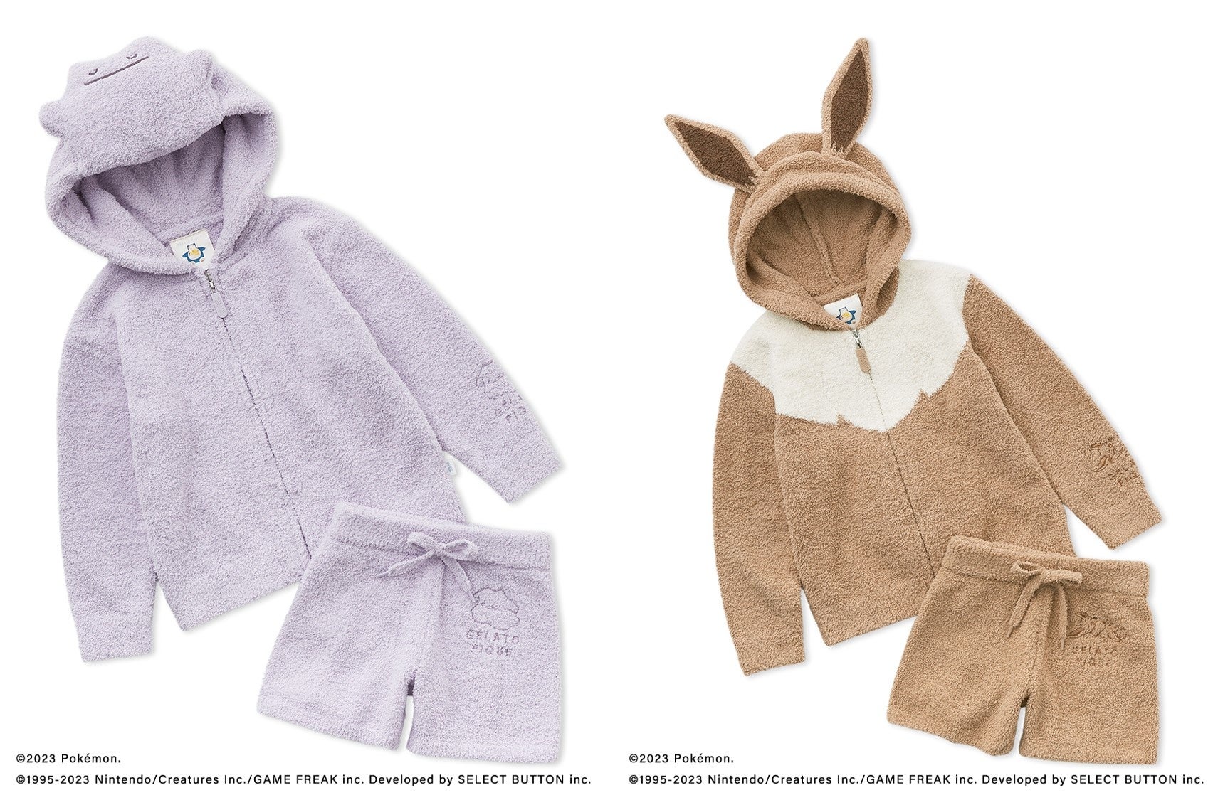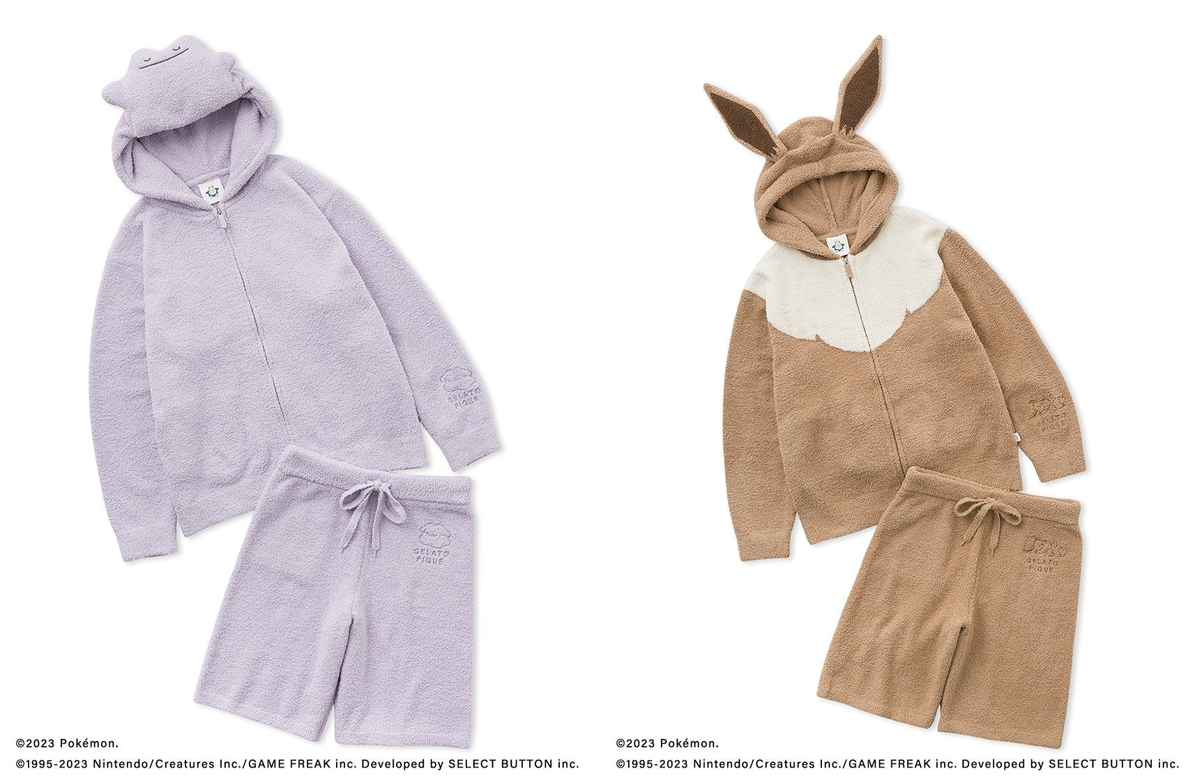 『Pokémon Sleep』とジェラート ピケのコラボアイテム第2弾では、ヤドンとメタモン、イーブイが登場!パーカとショートパンツにはどちらも眠っているポケモンとブランドロゴの刺繍入り。