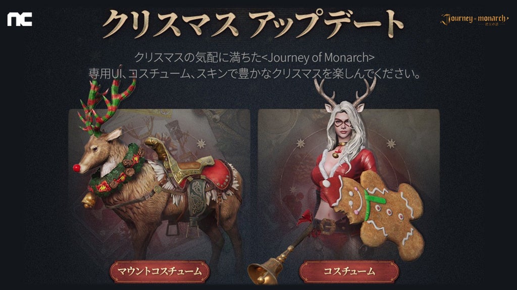 さらに、プレイヤーである「君主」の外形を変化させるコスチュームや、「英雄」「マジックドール」たちの外形を変化させるスキンもクリスマス仕様で新登場します。