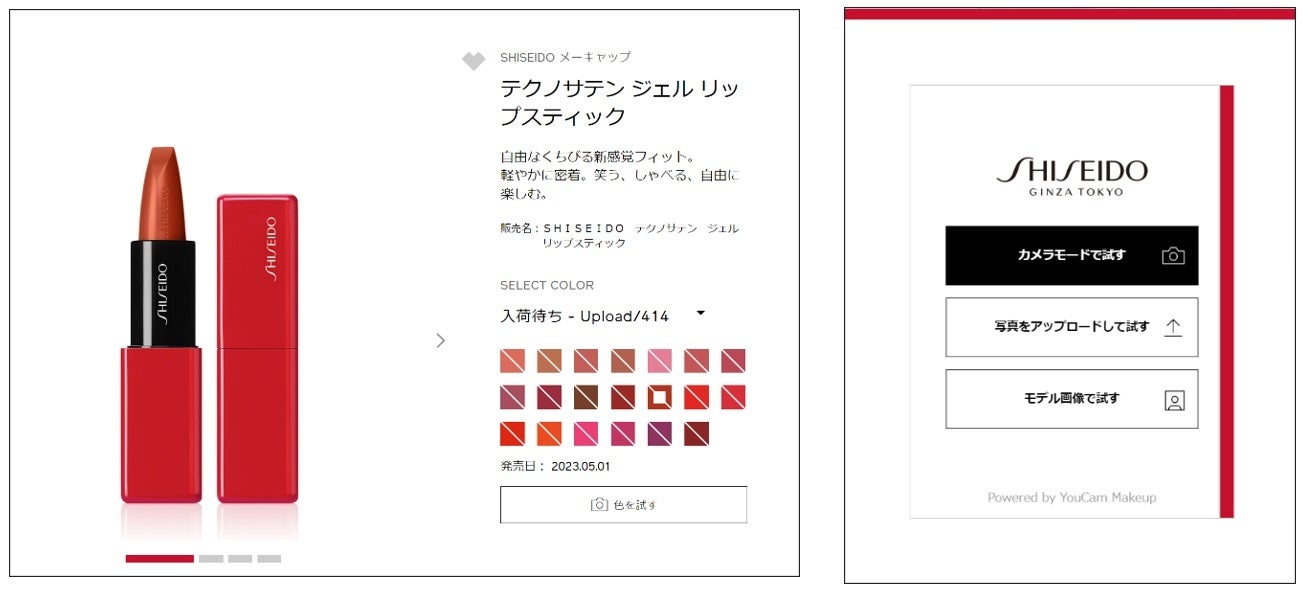 SHISEIDO テクノサテン ジェル リップスティック公式サイトでは、お手持ちのスマートフォンのカメラを起動して自身の顔でメイクした姿をシミュレーションできます。