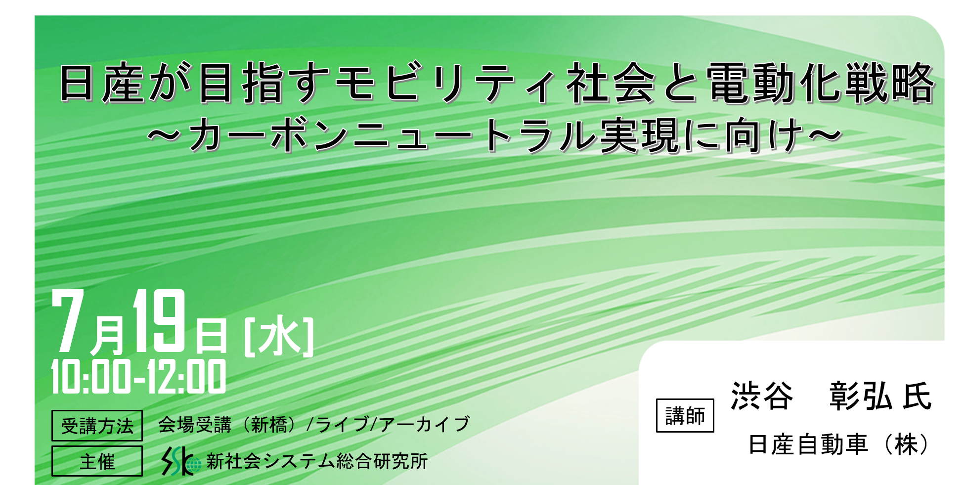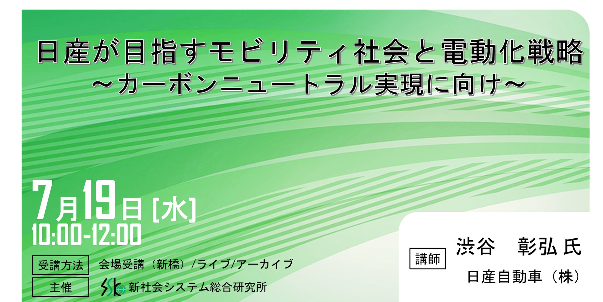「日産が目指すモビリティ社会と電動化戦略」と題して、日産自動車株式会社 パワートレイン・EV技術開発本部 アライアンスPED 渋谷 彰弘氏によるセミナーを2023年7月19日(水)に開催!!