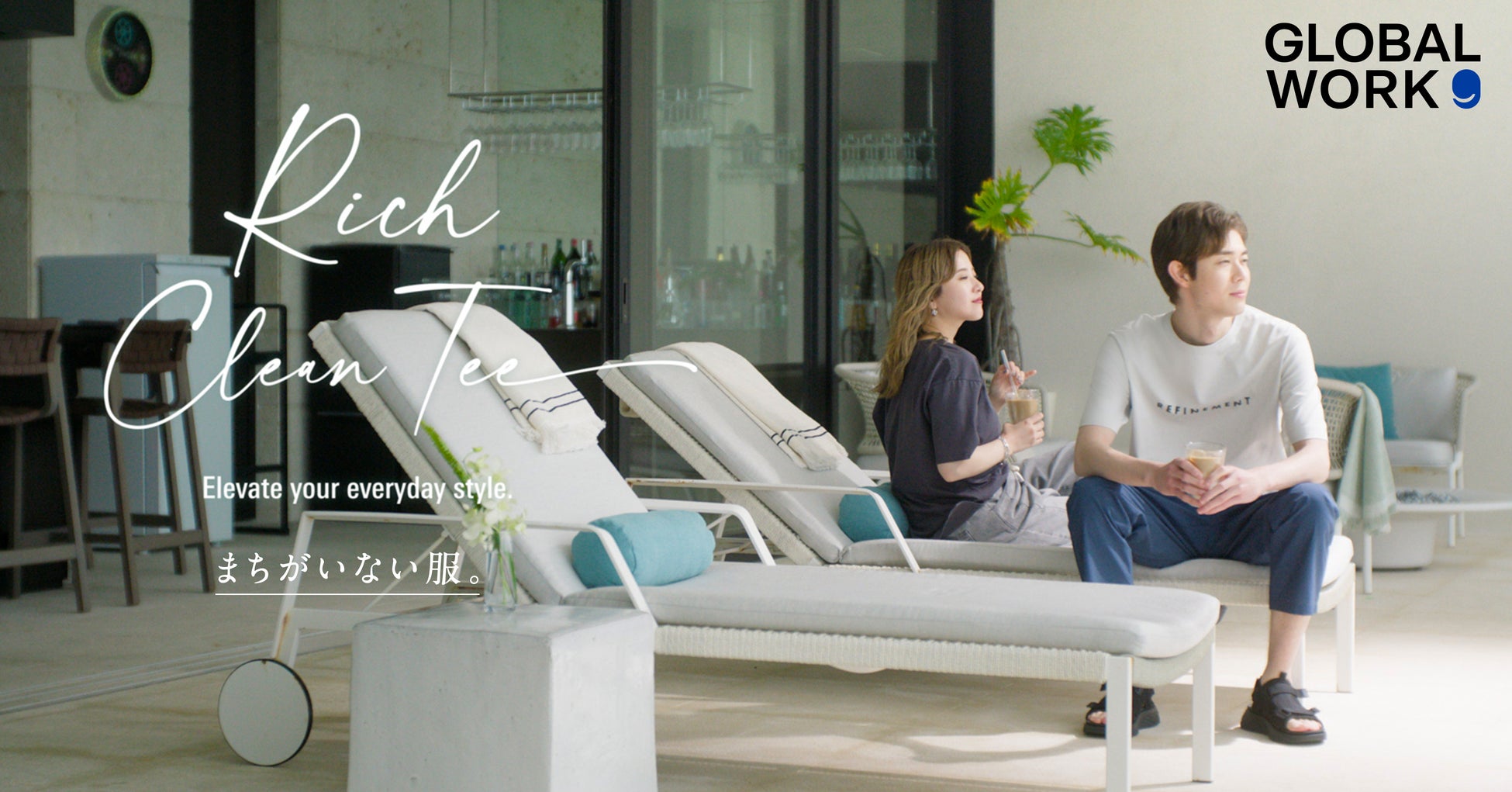 吉⾼由⾥⼦さん・宮沢氷⿂さんが出演するGLOBAL WORKの新TVCM「リッチクリーンTeeは、まちがいない服。暑くなってきたら篇」を6⽉12 ⽇より放映開始︕
