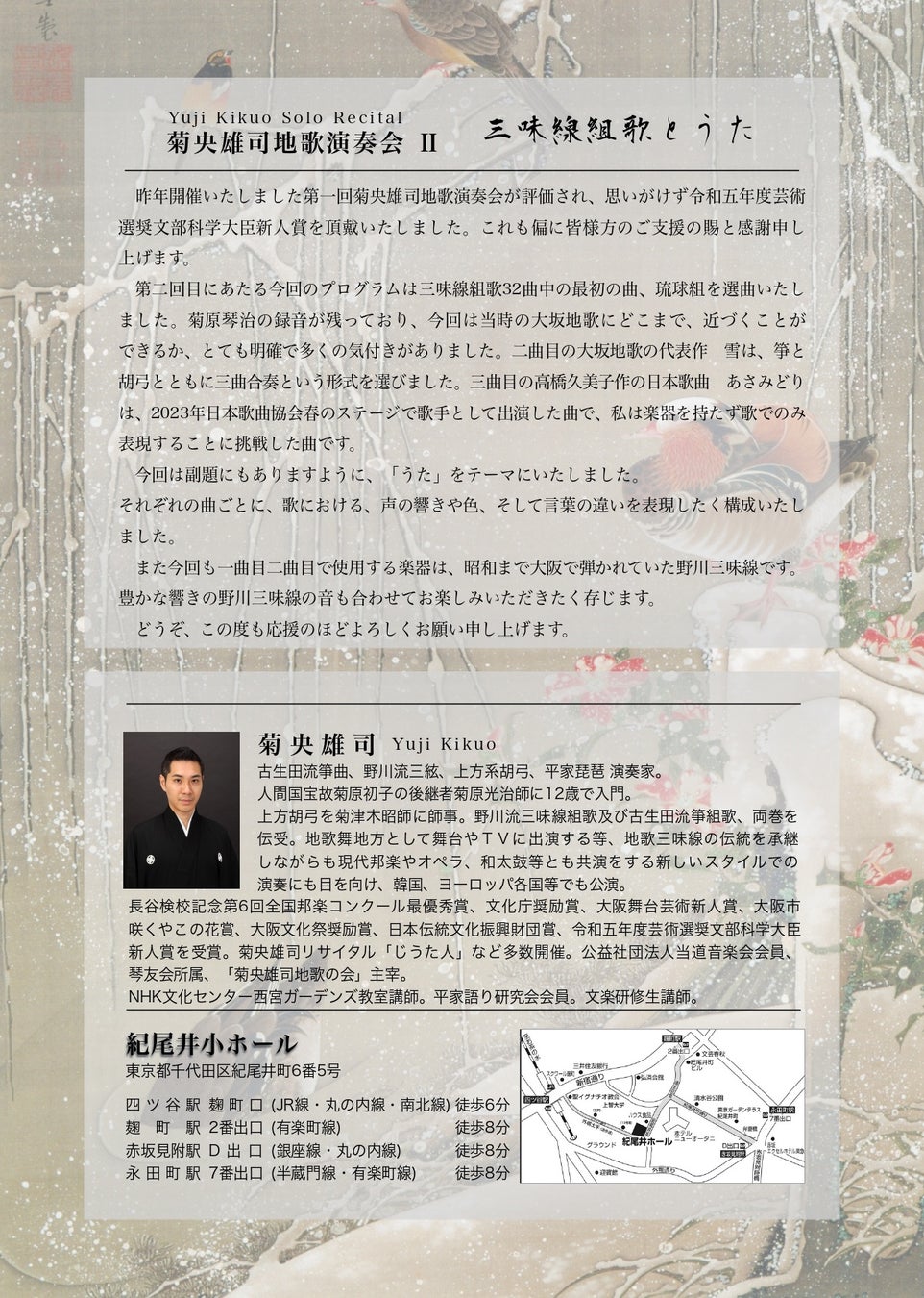 『第二回 菊央雄司地歌演奏会 〜三味線組歌 と うた〜』