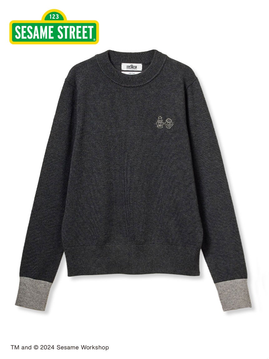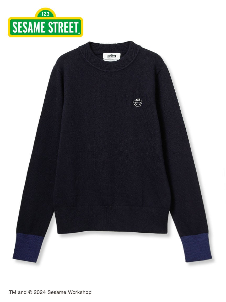 Mila Owenを代表するベーシックニットの胸元に、遊び心溢れるセサミストリートのキャラクターのワンポイント刺繍を施しました。袖はカラーブロックにすることでトレンド感を演出。