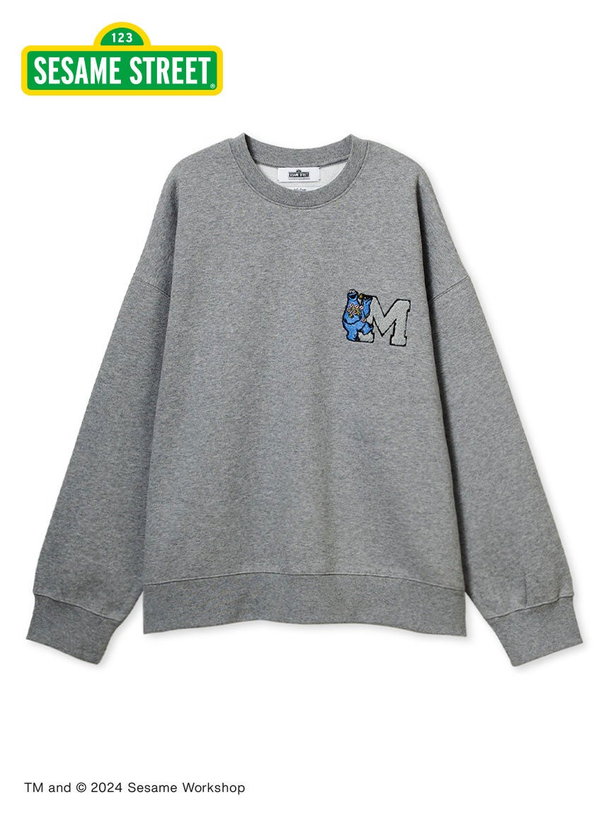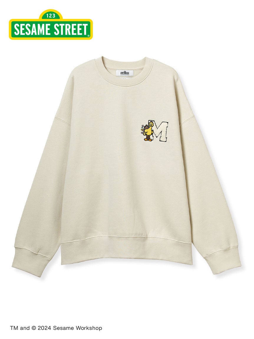 Mila Owenで人気のMロゴサガラ刺繍トレーナーと、セサミストリートのキャラクターがコラボした一着。