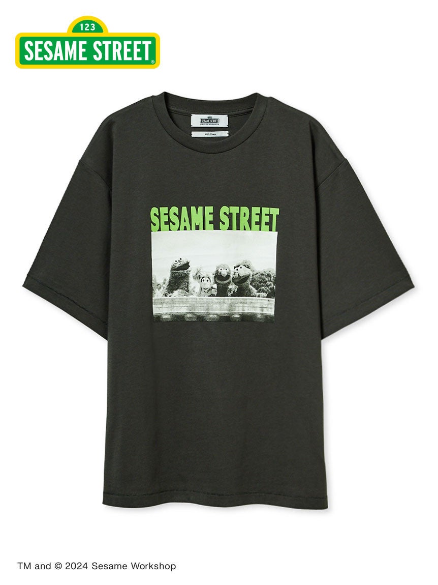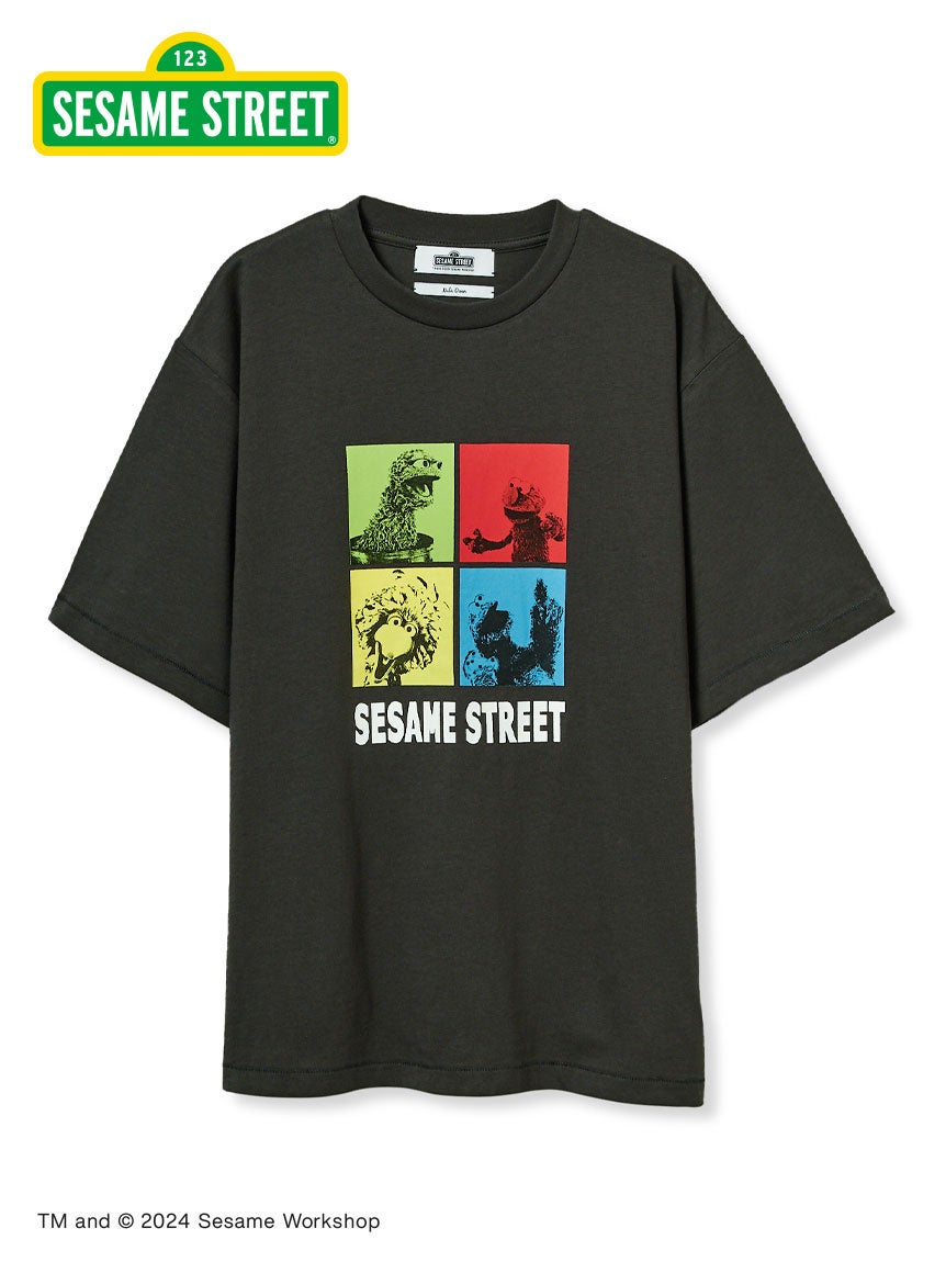 セサミストリートのキャラクターを目を引くプリントで身に着けられるロックTシャツ。