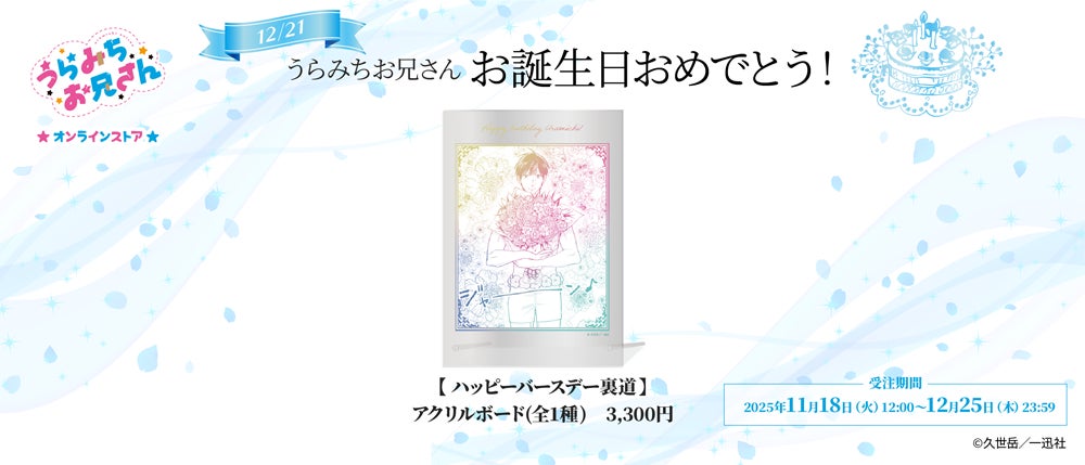 2025年12月21日(日)のうらみちお兄さんの誕生日を記念した特別グッズ、アクリルボードが販売中!