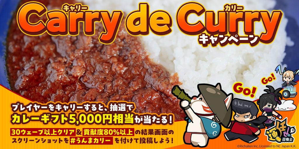 30ウェーブ以上をクリアし自分の貢献度が80%以上を達成した方に、抽選で20名様にカレーギフト5,000円分相当が当たるキャンペーンを開催します。