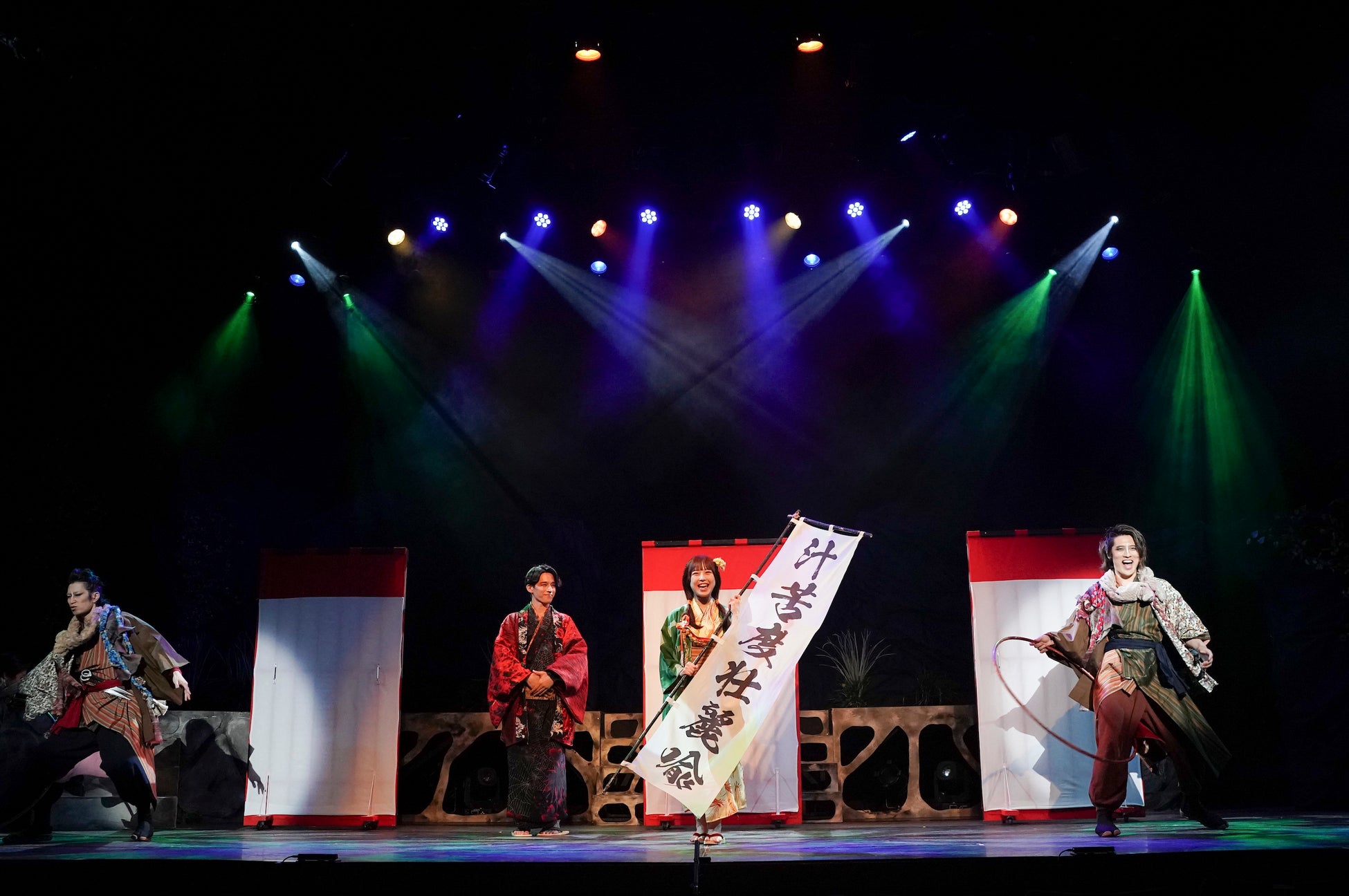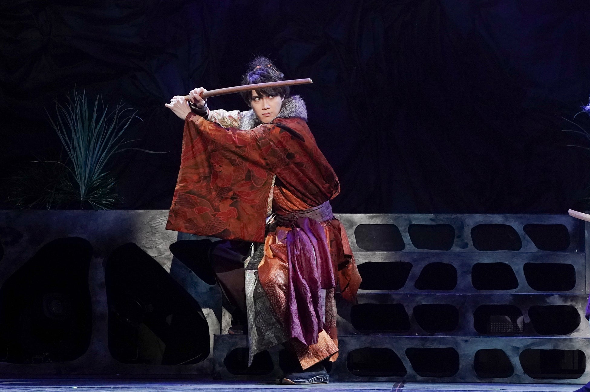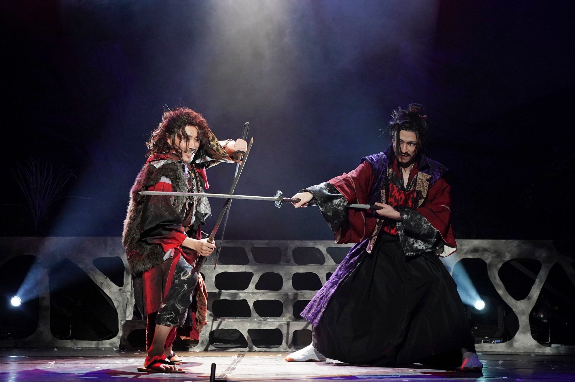 また、見せ物小屋の多羅尾兄弟(守上慶人、横田陽介)、魔王と呼ばれる荒木頼遠(小栗諒)と配下・今國灰之介(三本木大輔)と緒川紅丸(萩野祐矢)らを相手にした迫力満点な殺陣も見どころ。特に荒木は“魔王”を名乗るだけあって、そこにいるだけで気圧されるような威圧感を放っている。一風変わった武器を使用するキャラクターも多く、見た目にも華やかだ。