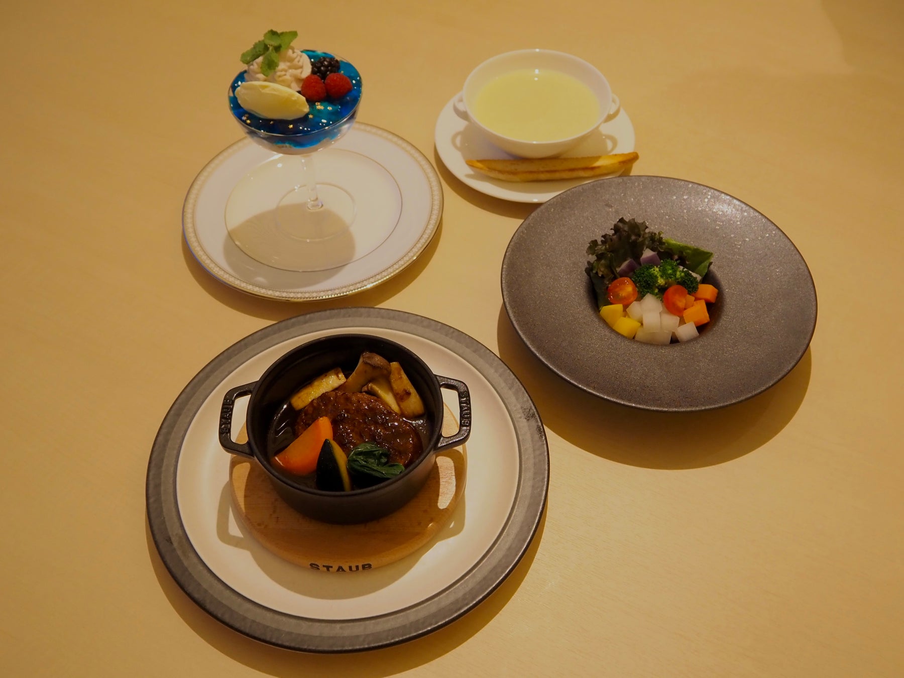 内容(大人):前菜/魚料理/肉料理/デザート/パン