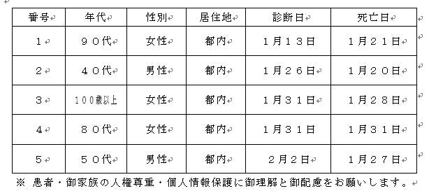 都内で新型コロナウイルスに感染した方が死亡されましたのでお知らせします。お亡くなりになった方のご冥福をお祈り申し上げます。