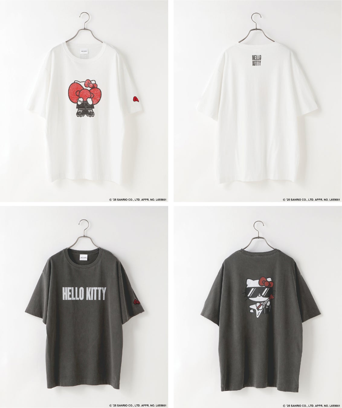 Tシャツはレディース2型とキッズ2型のラインアップで、親子でお揃いコーデも楽しんでいただけるデザインです。日本の“カワイイ”を代表する「ハローキティ」のいつもとは違う新しい魅力を持つ、“ロックでカワイイハローキティ”が楽しめるアイテムです。夏フェスなどこれからの時期にぴったりなラインアップです。