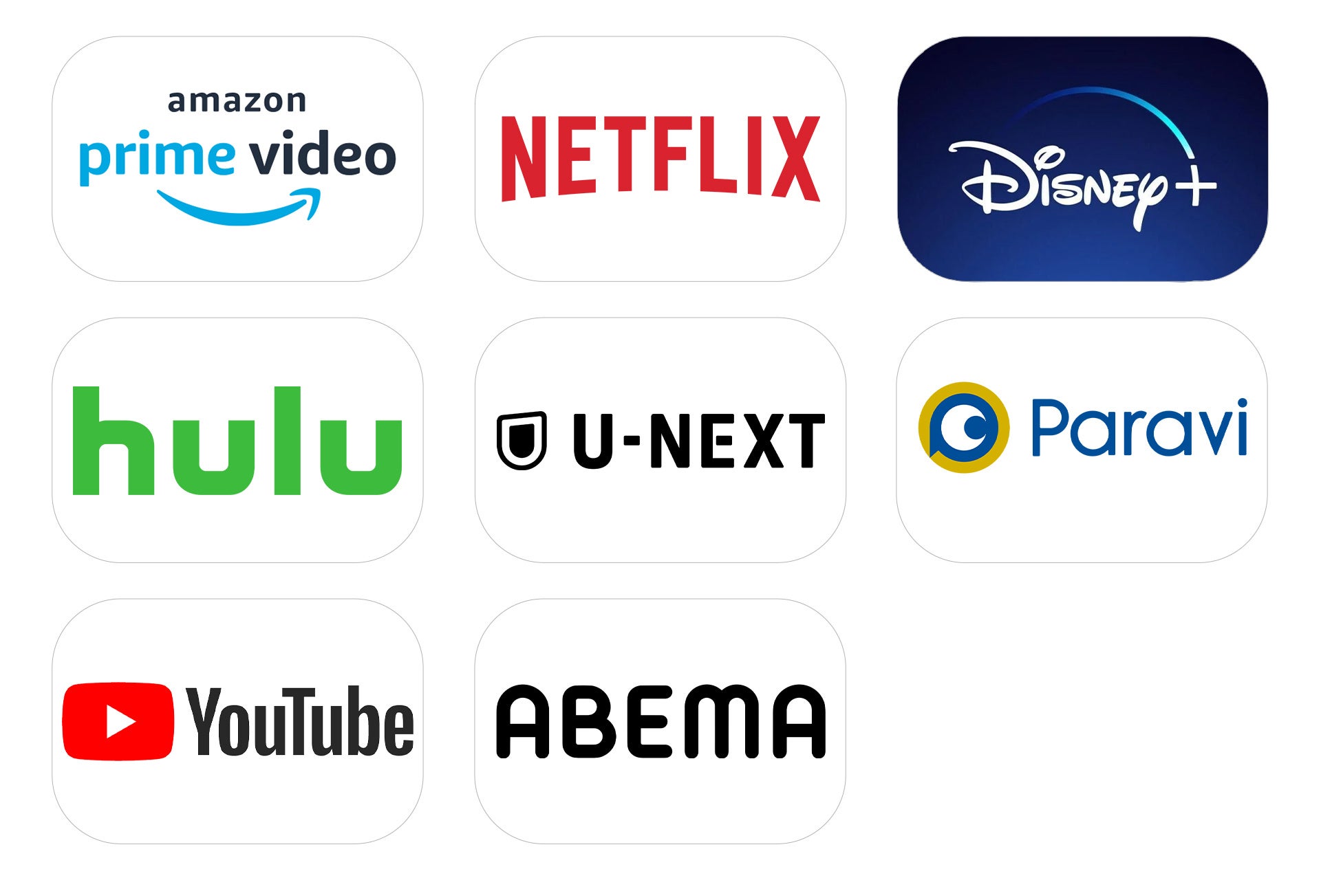 ・amazon prime video、NETFLIX、Disney+、hulu、UNEXT(Paravi)(お客さまのアカウントが必要)