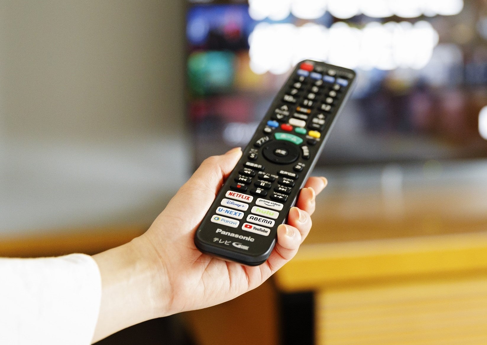 スマートテレビに付属しているリモコンには、ご利用いただける8つの動画配信サービスボタンが設定されてるため、ワンタッチでアクセス、視聴できます。お客さまのアカウント情報や視聴履歴は、テレビの電源をオフにすると自動削除されるので、個人情報保護も安心です。