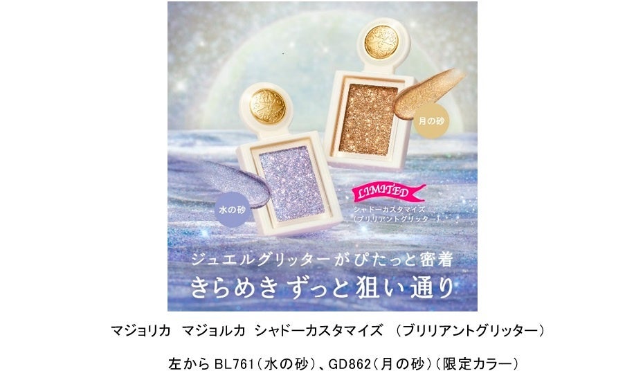 ◆マジョリカ マジョルカ シリーズ最高のきらめきが叶う高密着グリッターアイシャドウから、「BL761(水の砂)」、「GD862(月の砂)」の2色を限定発売します。