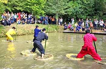 伊賀と並ぶ忍者の里・甲賀にあるスポット。広大な敷地内に、さまざまな仕掛けが隠された「からくり屋敷」、本格的な手裏剣を体験できる「手裏剣道場」、「忍者道場」などの施設が点在しています。忍者服のレンタルもあるので、大自然を満喫しながら、本格的な忍者体験がかないます。