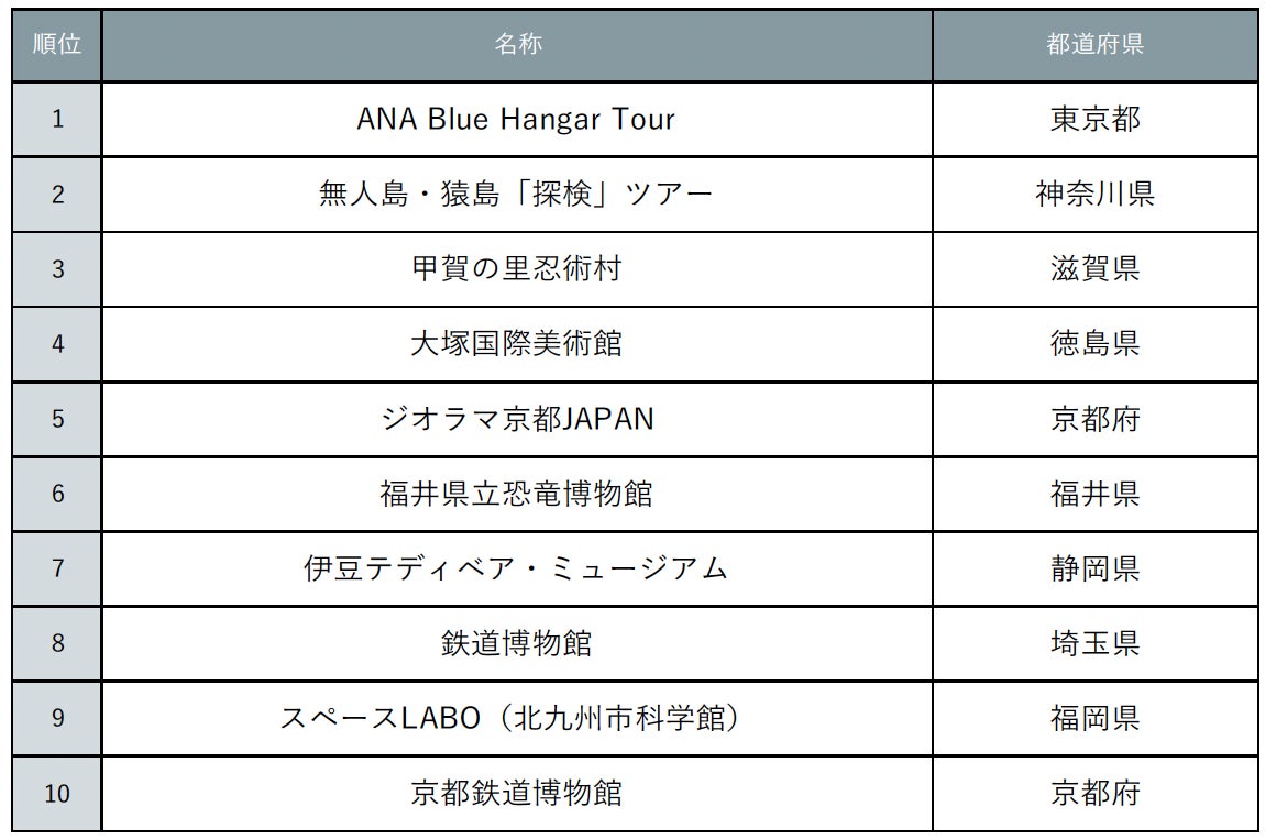 夏休みも終盤、ランキング結果を参考に、子どもも大人も夢中になれる体験スポットへおでかけしてみてはいかがでしょう。自由研究のアイデアやヒントが見つかるかもしれません。