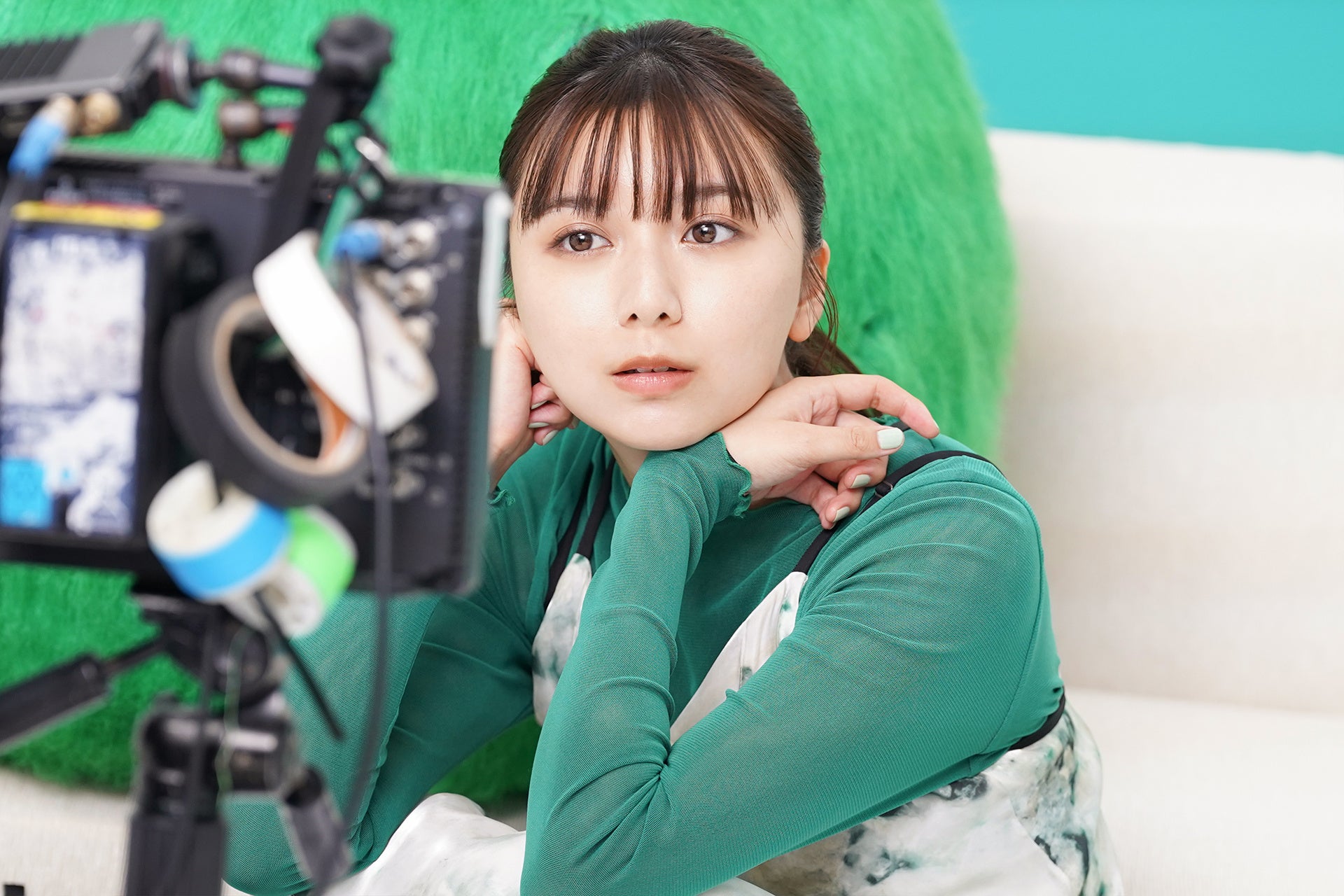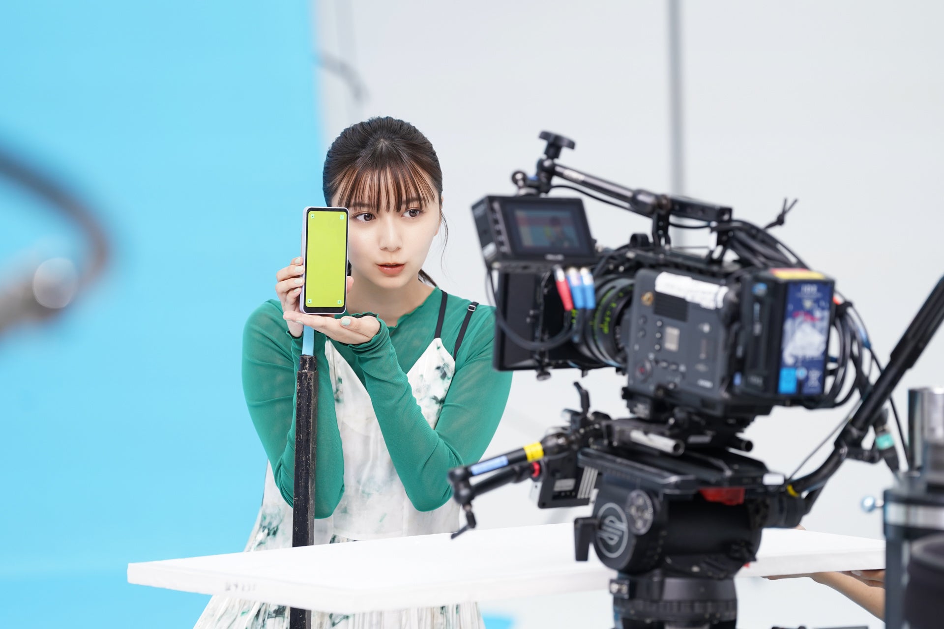 撮影当日、上白石さんはSUUMOカラーの緑のカットソーに白のキャミワンピースというかわいらしい衣装に、ポニーテール姿で撮影に臨まれました。上白石さんは現場に登場した時から、20代とは思えぬ落ち着いた空気をまとい、圧巻のオーラで会場のスタッフを魅了。監督からの指示に笑顔で応えながら、真摯(しんし)に取り組む姿が印象的でした。