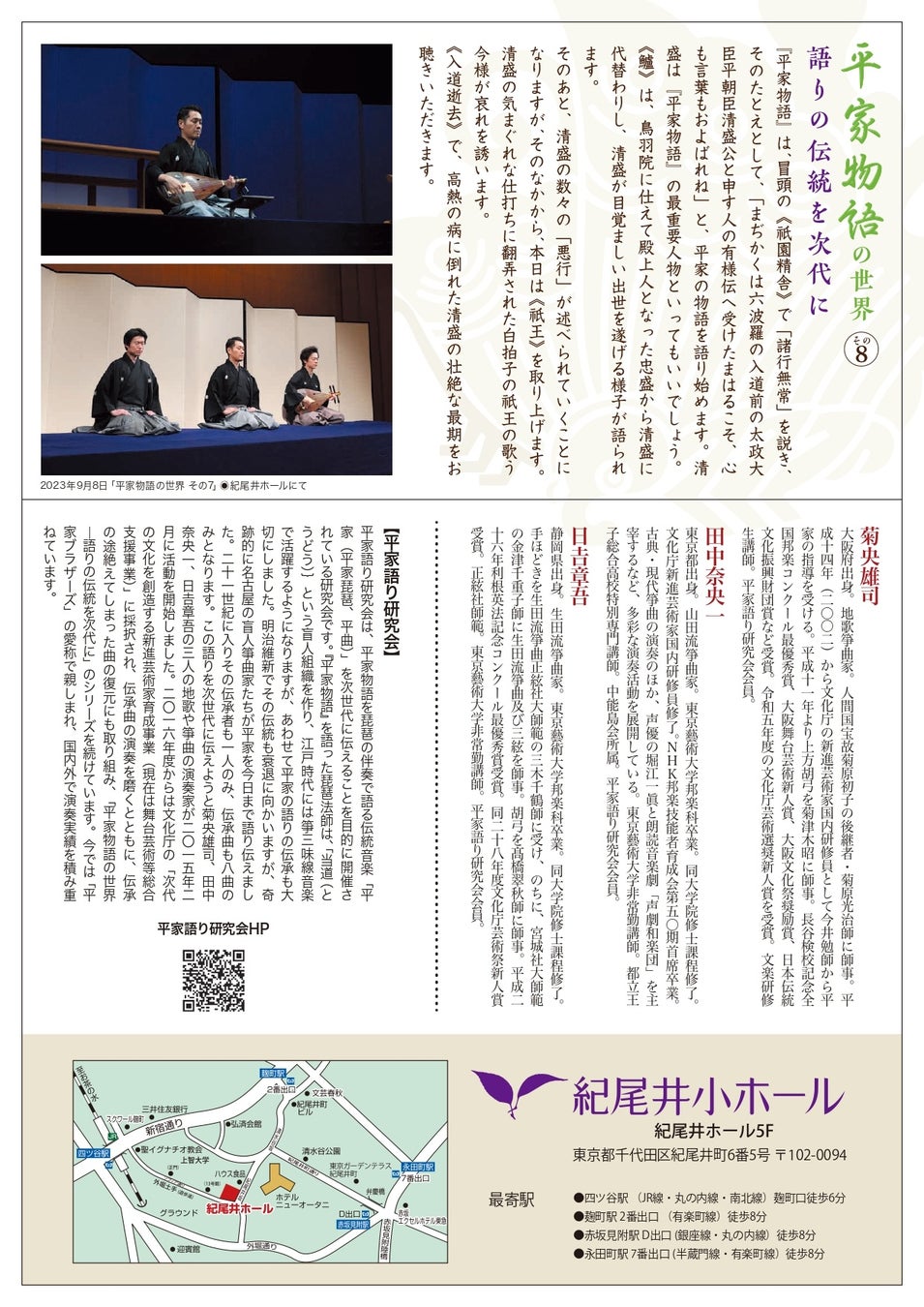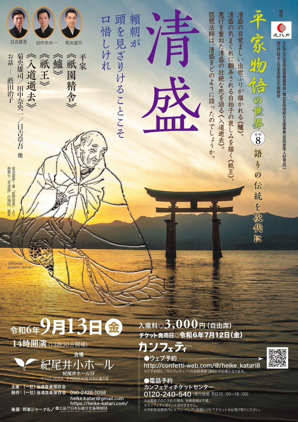 三人の若手演奏家が 琵琶法師『平家物語』の伝統を伝える 「平家物語の世界その8 清盛」上演決定 チケット発売中!