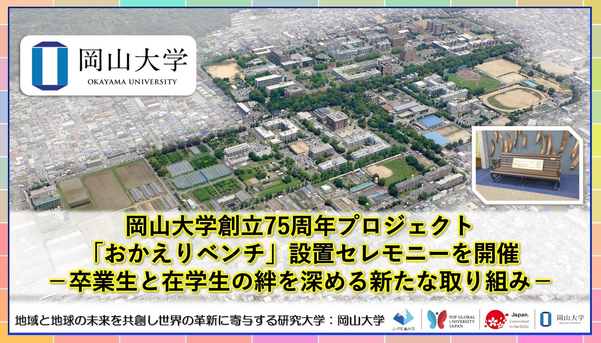国立大学法人岡山大学(本部:岡山市北区、学長:那須保友)は、2024年11月2日、に岡山大学創立75周年プロジェクト「おかえりベンチ」設置セレモニーを開催しました。