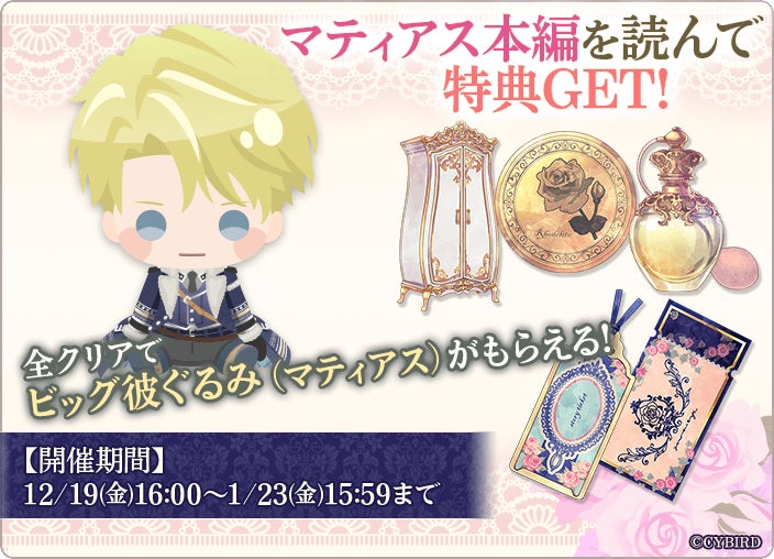 「マティアス=オースブリンク」本編配信を記念して、アプリ内では本編進めようイベント「マティアス本編配信記念 この愛は有罪です。」を、開催しています。