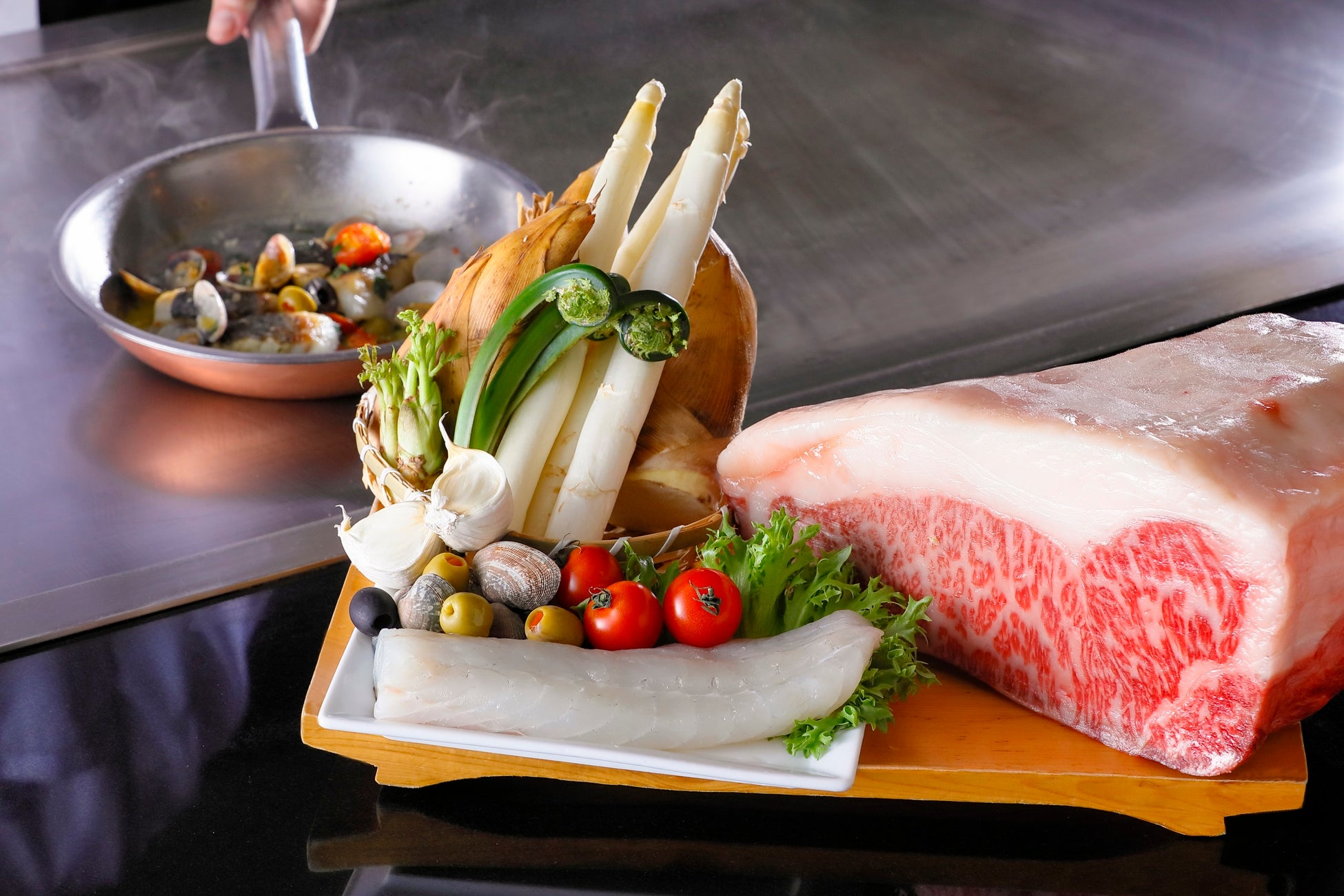 鉄板焼の期間限定特別メニュー「二人の春爛漫」は、旬の筍とホワイトアスパラガスから香る春の便りが食事に華を添える、お二人で過ごす贅沢なひとときにぴったりなスペシャルディナーコースです。
