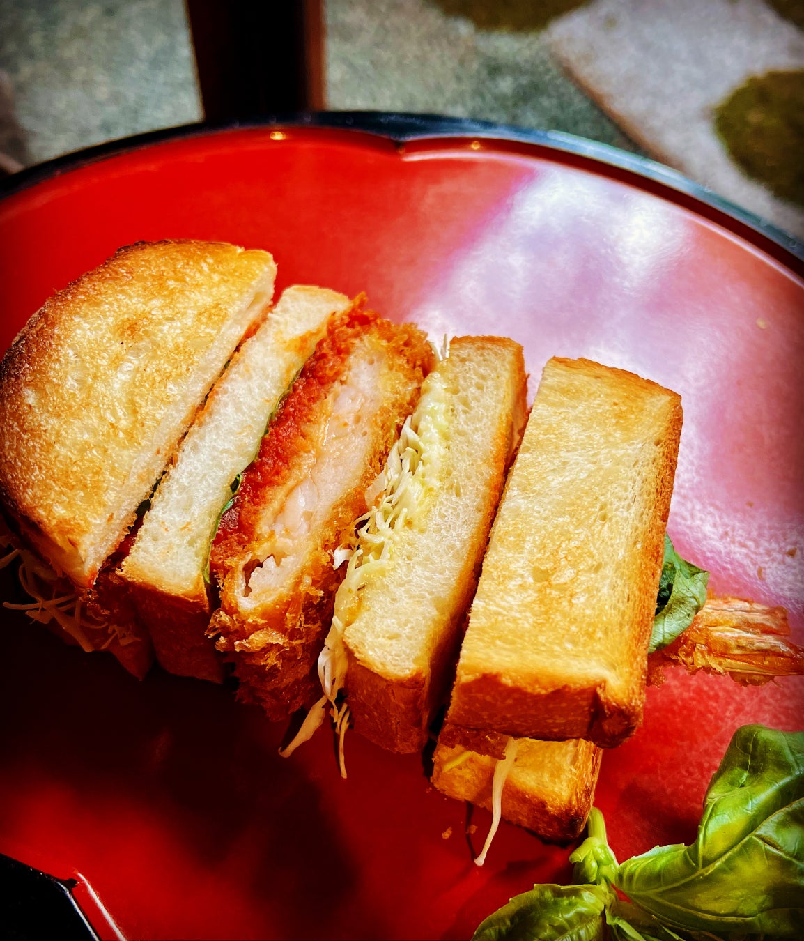 東京下町神田に店をおくパブリックベーカリーカフェ<COLAZIONE VARIO(コラッツィオーネ ヴァーリオ)>。「アボカドポーク石窯焼きカツサンド」はアボカドオイルを加えた特殊飼料と、放牧スタイルで育った〈アボカドサンライズポーク〉をベーカリーならでは石窯のオーブンでじっくり調理。さらりとして甘みがある脂身を閉じ込めた肩ロース肉に、薄い衣をまとわせ米油で揚げたカツはヘルシーな仕上がりです。蒸しキャベツと北海道産白口浜真昆布のうま味、豆乳・玄米を練り合わせた特製食パン〈真昆布UMAMI食パン〉に挟んだ、特別なカツサンドをぜひご賞味ください。