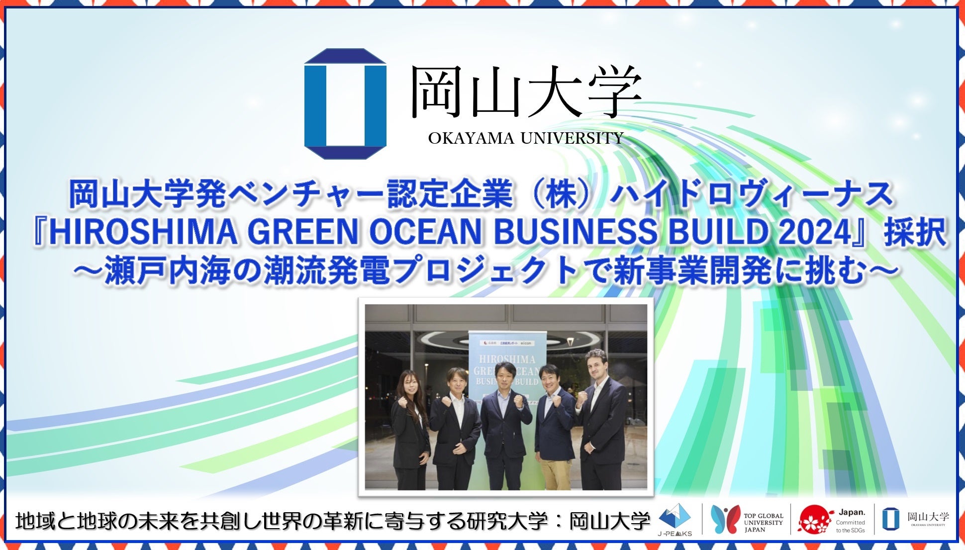 岡山大学発ベンチャー認定企業の株式会社ハイドロヴィーナス『HIROSHIMA GREEN OCEAN BUSINESS BUILD 2024』に採択~瀬戸内海の潮流発電プロジェクトで新事業開発に挑む~