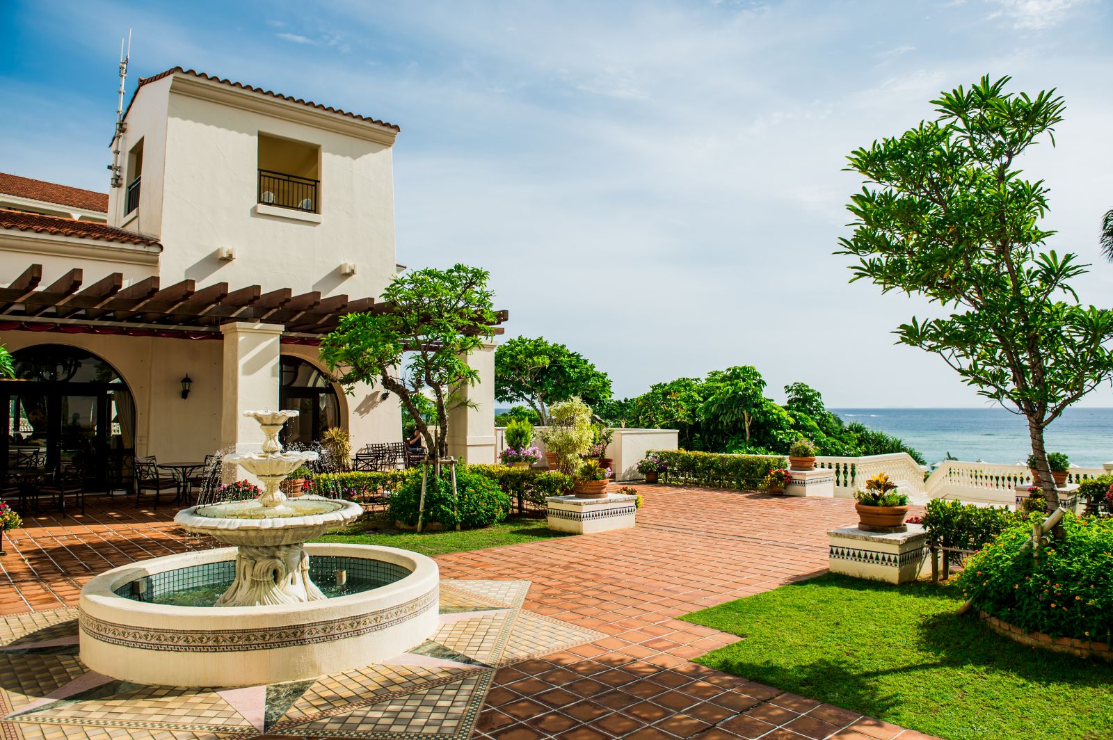 ホテル日航アリビラは、異国情緒漂うスパニッシュコロニアル調の建物が特徴的なオンザビーチのリゾートホテルです。ホテルの目の前は「アリビラブルー」と称される沖縄本島屈指の透明度を誇る海が広がります。
