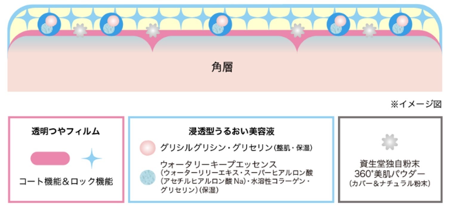 グリシルグリシン・グリセリン(整肌・保湿)、ウォータリーキープエッセンス(ウォーターリリーエキス・スーパーヒアルロン酸(アセチルヒアルロン酸Na)・水溶性コラーゲン・グリセリン)