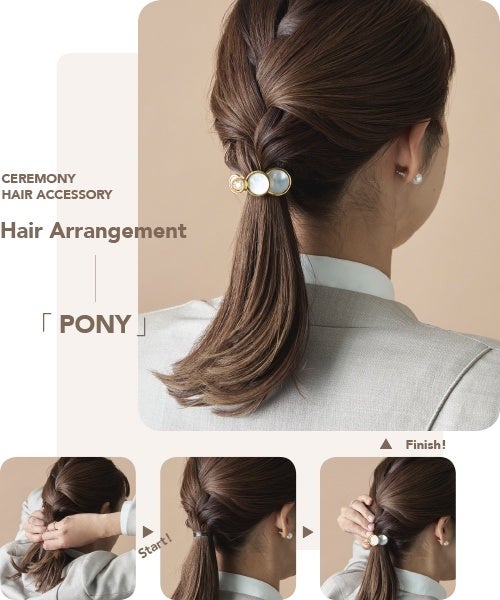 ロングヘアの強い味方はポニー。清潔感のあるまとめ髪をほどよく華やかにアレンジしてくれます。ヘアゴムに引っ掛けるだけで使えるポニーフックは、ヘアアレンジが苦手な方にもおすすめ!