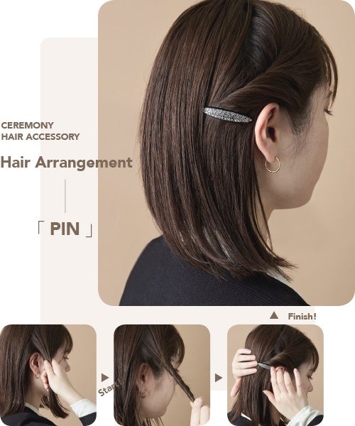 ボブやショートヘアを手軽にアレンジするならピンがおすすめ。サイドアップしてピンを飾るだけで、華やか&すっきりとした印象を与えてくれます。小ぶりなピンなら複数づけしても目立ちすぎず◎。