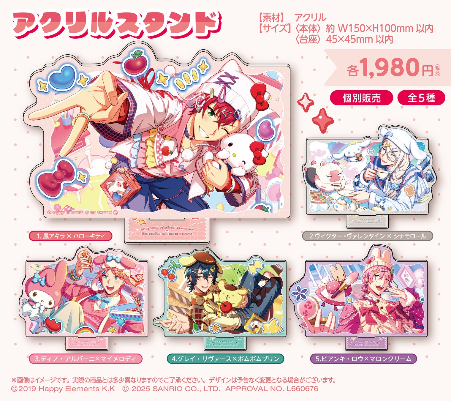 1.鳳アキラ×ハローキティ / 2.ヴィクター・ヴァレンタイン×シナモロール / 3.ディノ・アルバーニ×マイメロディ / 4.グレイ・リヴァース×ポムポムプリン / 5.ビアンキ・ロウ×マロンクリーム