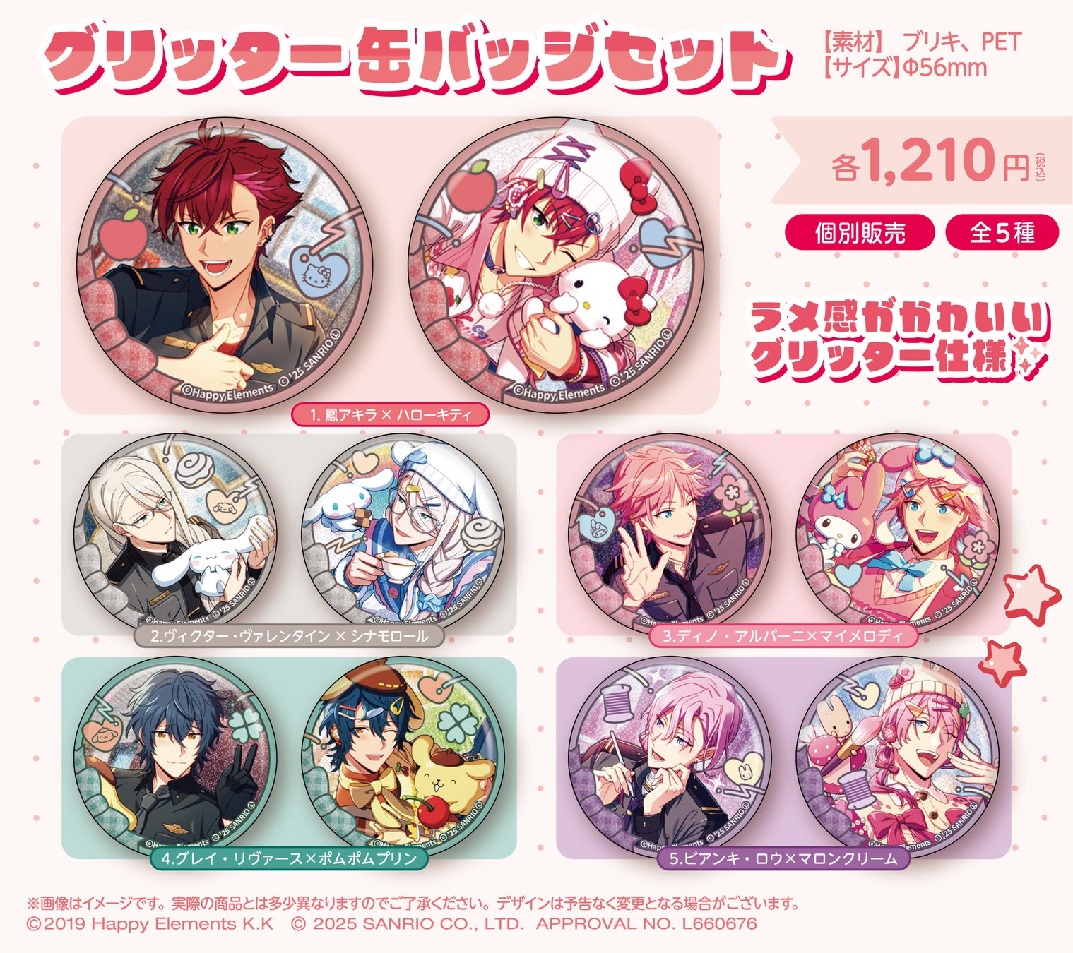■エリオスライジングヒーローズ×サンリオキャラクターズ グリッター缶バッジセット