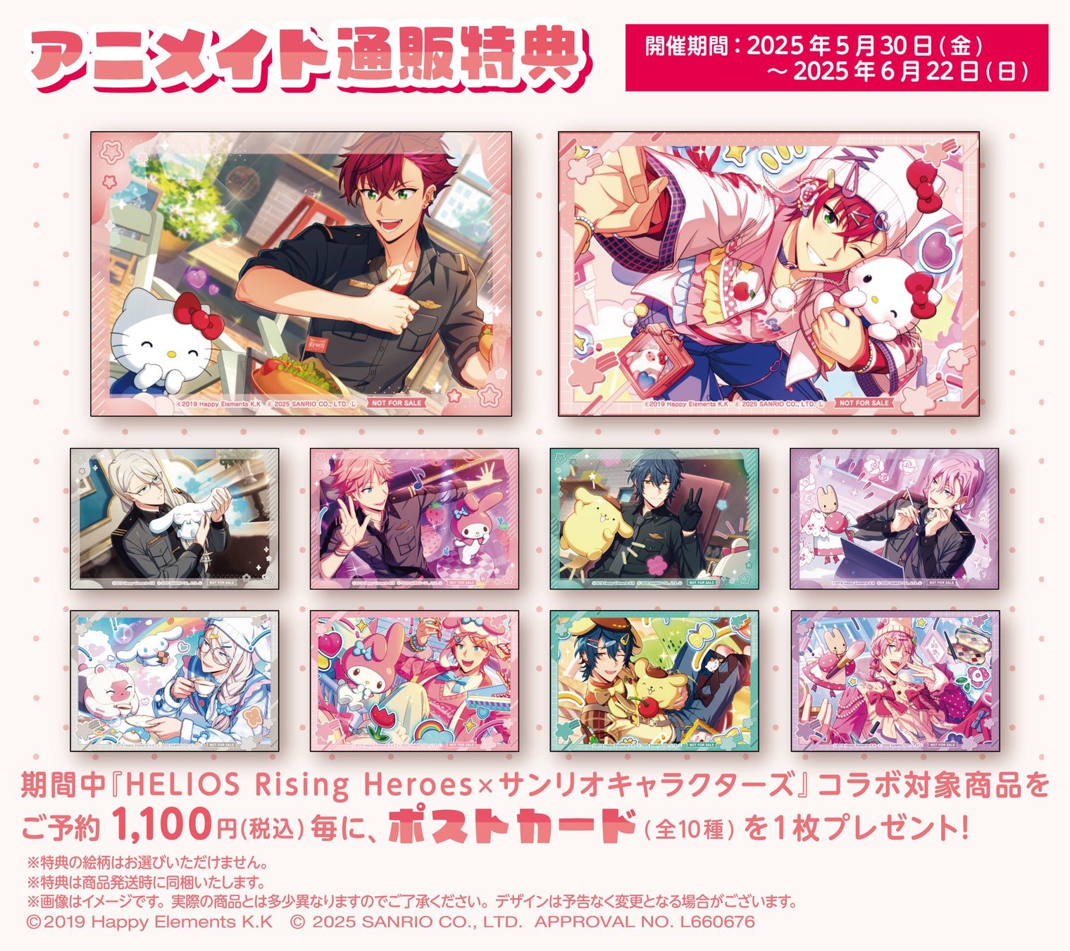 期間中『HELIOS Rising Heroes×サンリオキャラクターズ』コラボ商品をご予約1,100円(税込)毎に、ポストカード(全10種)を1枚プレゼント!