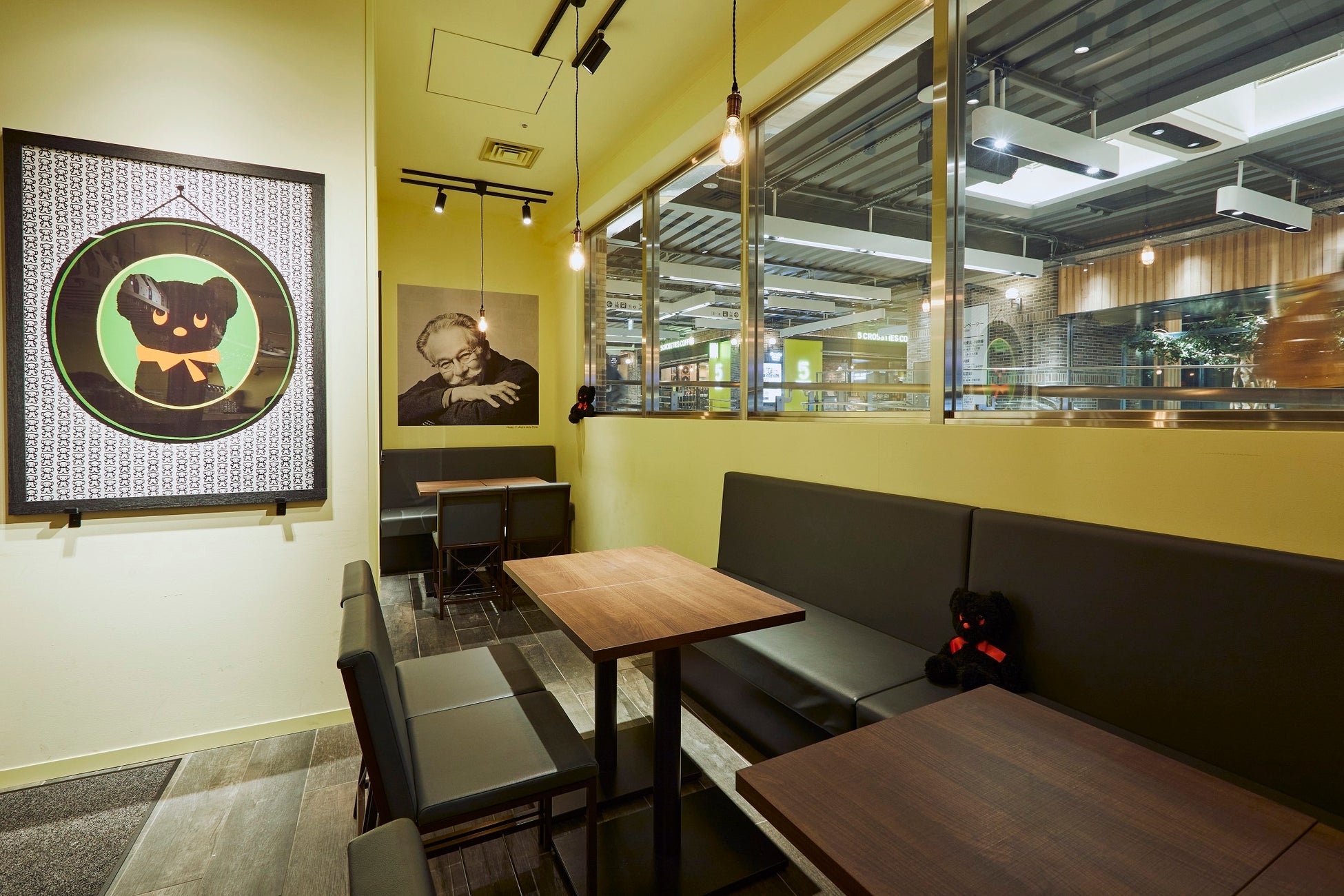 常設店内の飲食スペースはディック・ブルーナの絵本がディスプレイされたカフェスペースのほか、ブラック・ベアの作品に浸れるシックな空間も。それぞれはカーテンで仕切られ、過ごす場所によりディック・ブルーナの異なる世界観を堪能することができます。
