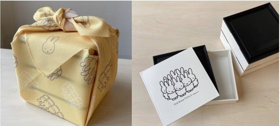 ミッフィー三段お重 ¥5,500(税込)、ミッフィーふろしき ¥3,190(税込)