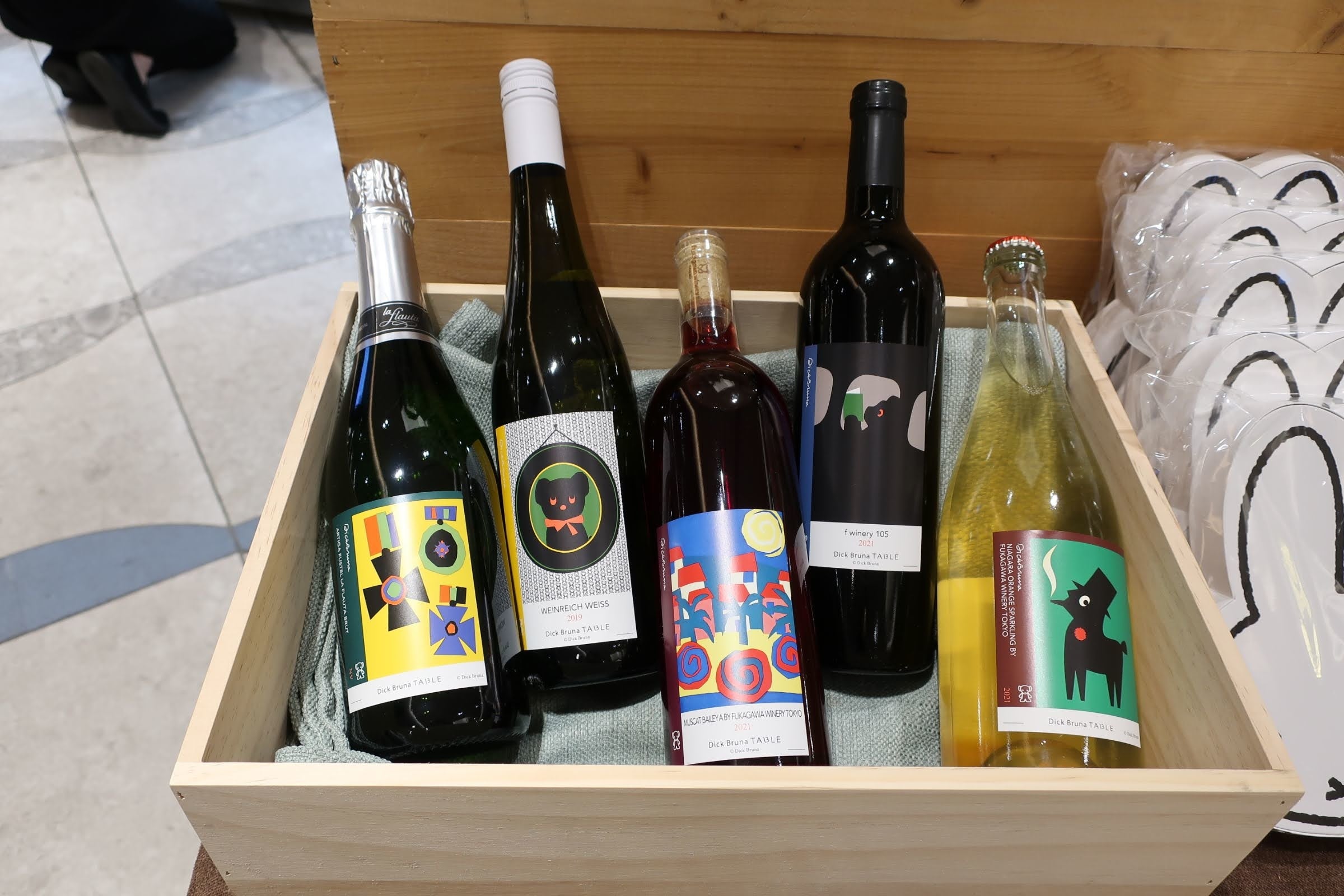 左:ディック・ブルーナのイラストをラベルにしたオリジナルワインの新作。中央・右:今回先行販売するオリジナルワインのラベル