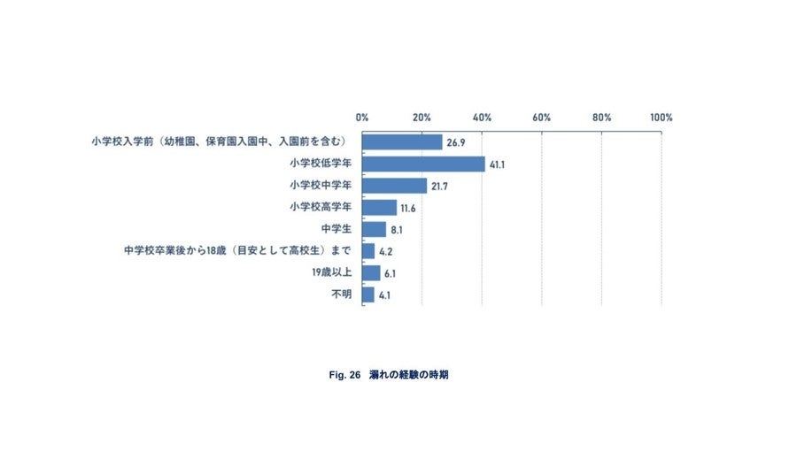 ・溺れの経験の時期は、12歳(小学生以下)までが多く、溺れの多くは、幼少期の体験である