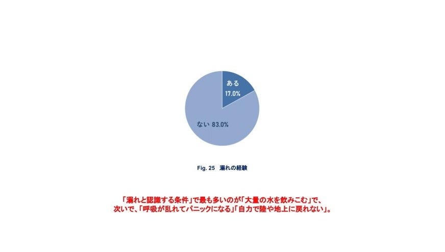 ・約5人に1人が、「自力で陸や地上に戻れない」「意識を失う」「心肺停止になる」といった、溺れの経験がある