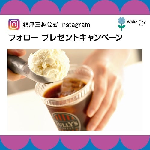 銀座三越公式Instagram(@ginza_mitukoshi)をフォローいただき、本館3階<タリーズコーヒー コミュ>にてフォロー画面を提示いただいた方に、ご注文のドリンクにT’sアイスのトッピングをプレゼント。