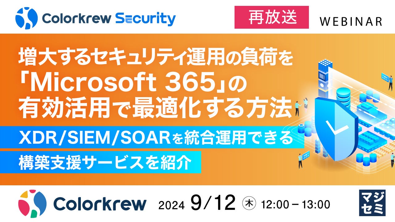マジセミ株式会社は、大変好評をいただいた「【再放送】増大するセキュリティ運用の負荷を「Microsoft365」の有効活用で最適化する方法」というテーマのウェビナーを再放送します。