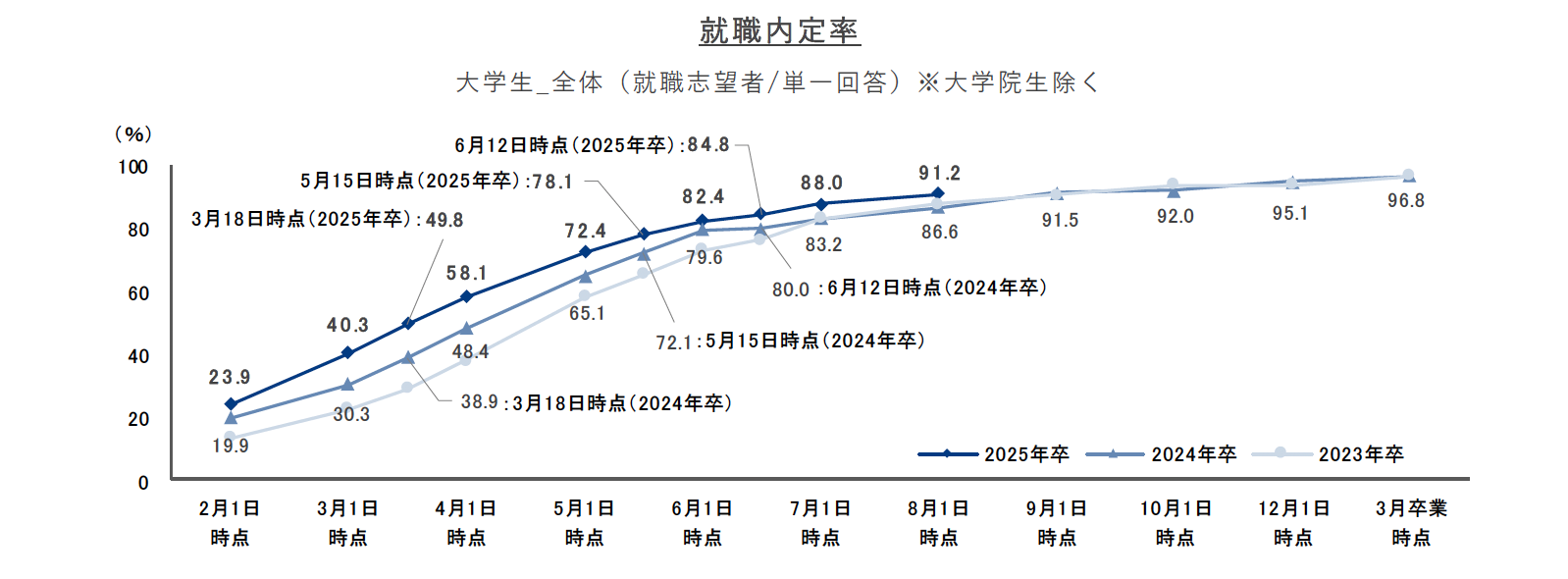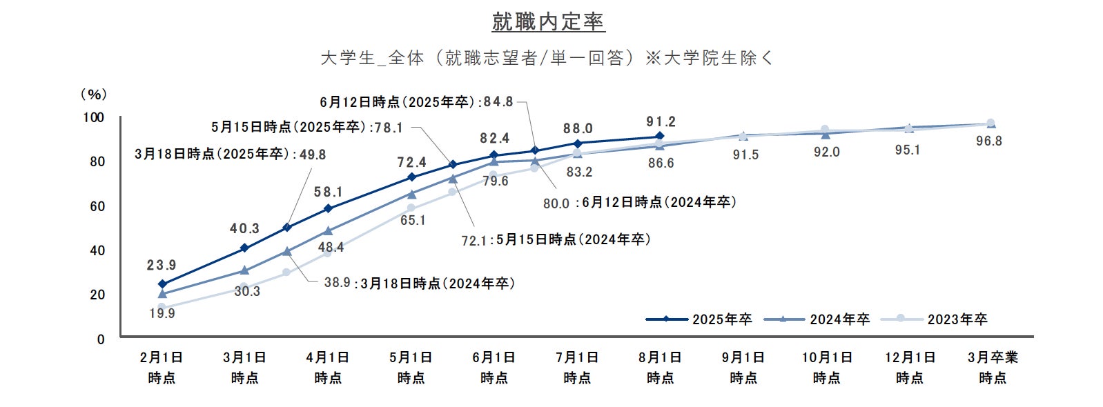 就職プロセス調査(2025年卒)「2024年8月1日時点 内定状況」