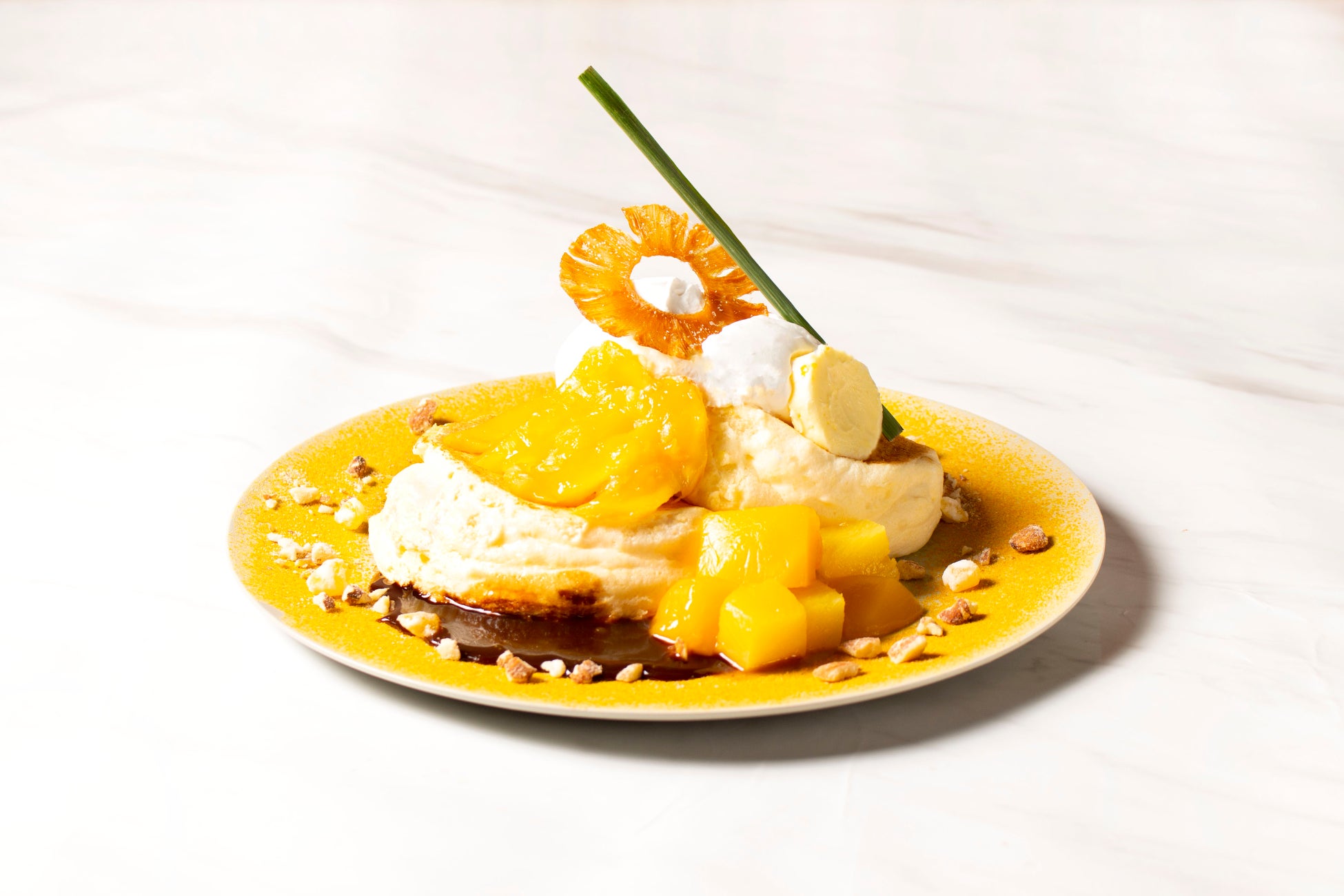 旬のフレッシュマンゴーとパッションコンポートをふんだんに盛り込んだ、目で夏を感じられるパンケーキです。