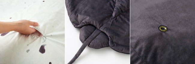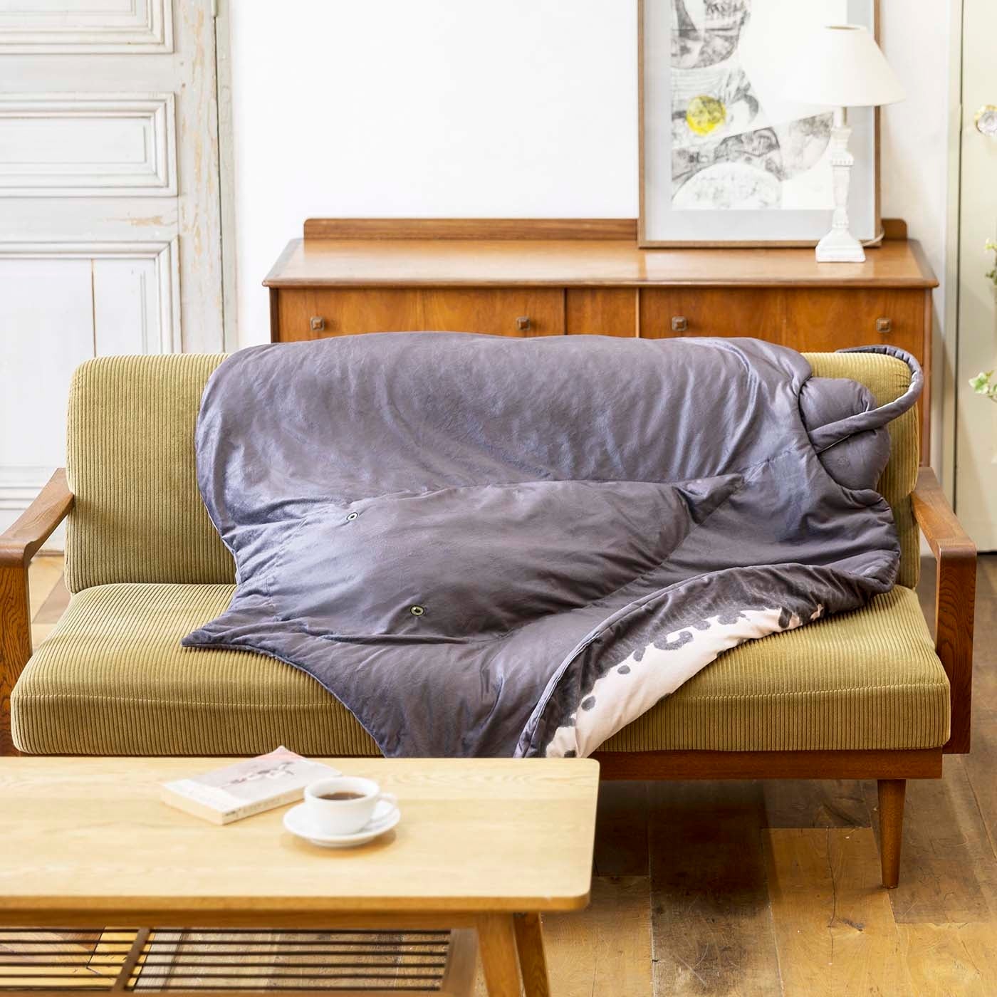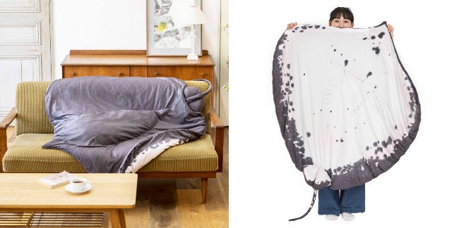 広げるとからだをすっぽりと包み込むような大きさです。クッションとして使ったり、ブランケットとしてはおったり、エイとの生活を満喫できます。