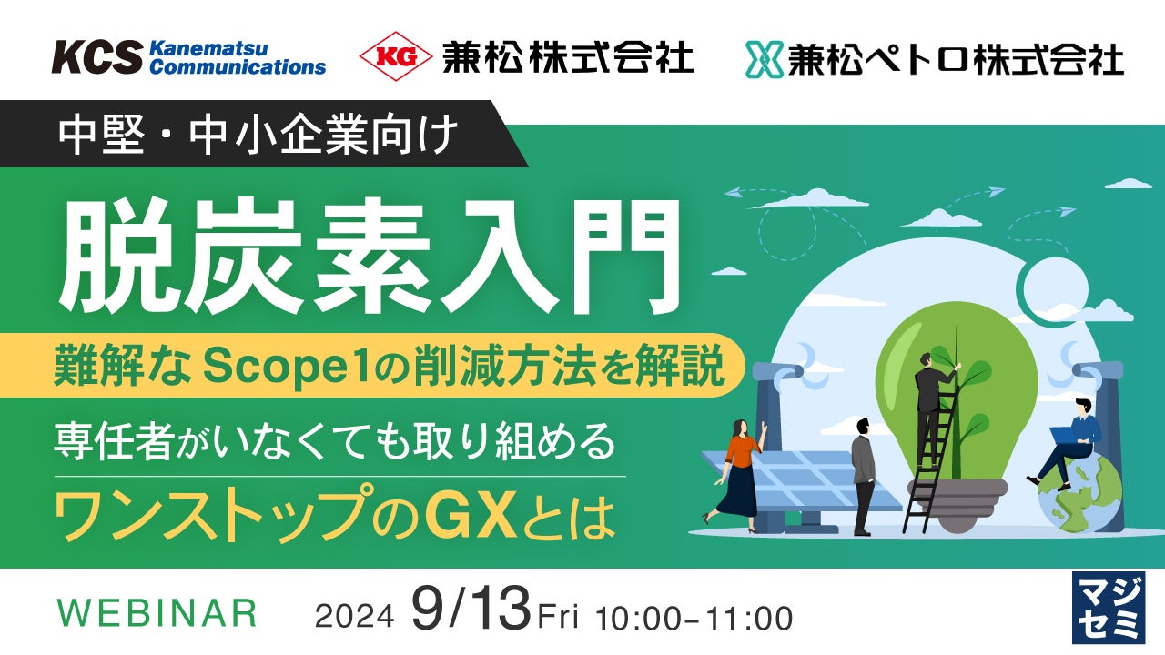 マジセミ株式会社は「【中堅・中小企業向け】脱炭素入門 難解なScope1の削減方法を解説」というテーマのウェビナーを開催します。